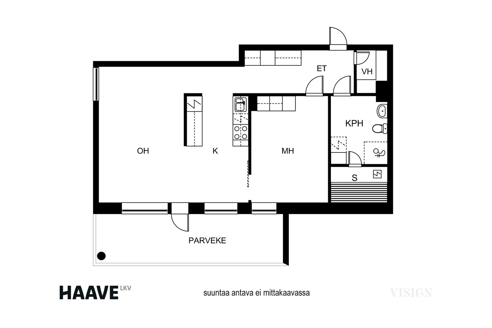 - Huoneiden lukumäärä: kaksio