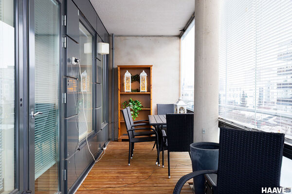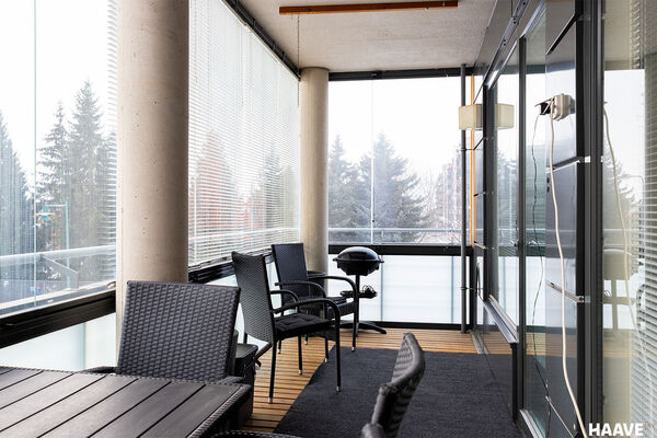 Asunnossa on tilava lasitettu parveke.