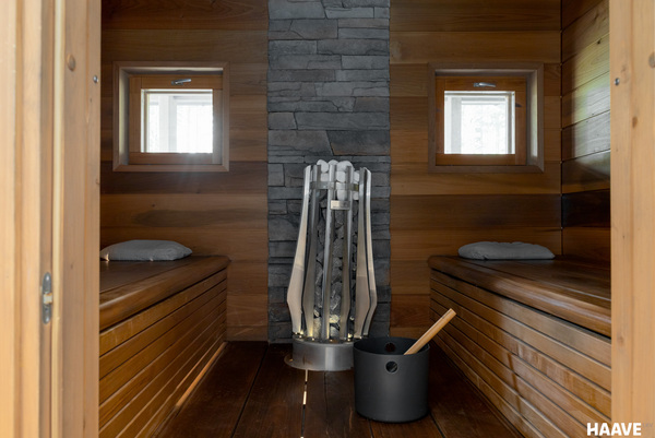 - Saunan kuvaus: Lauteet lämpökäsitelty magnolia