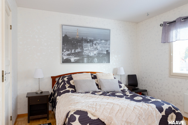 Kodin kolme makuuhuonetta tarjoavat rauhaa ja toimivuutta, ja säilytystilaa lisäävät vaatehuone sekä kaapistot. Kylpyhuoneessa on kaksi suihkua, lattialämmitys ja laadukkaat pinnat, ja arkea helpottaa erillinen wc sekä käytännöllinen kodinhoitohuone, josta on käynti suoraan pihalle.