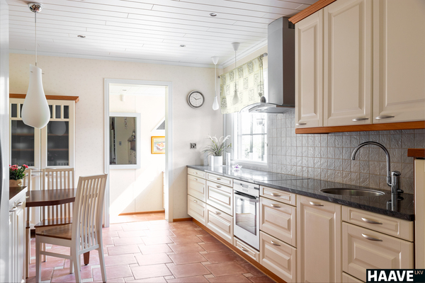 Talon keittiö on remontoitu Puustellin kaapistoin vuonna 2006 ja sieltä löytyy kaikki tarvittava.