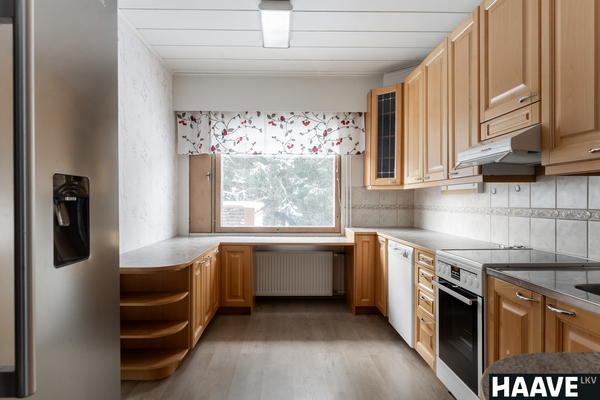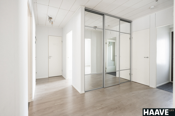Hyväkuntoinen rivitalon päätyasunto, jossa keittiö, olohuone, 2 makuuhuonetta, kylpyhuone, sauna, erillinen wc ja vaatehuone.