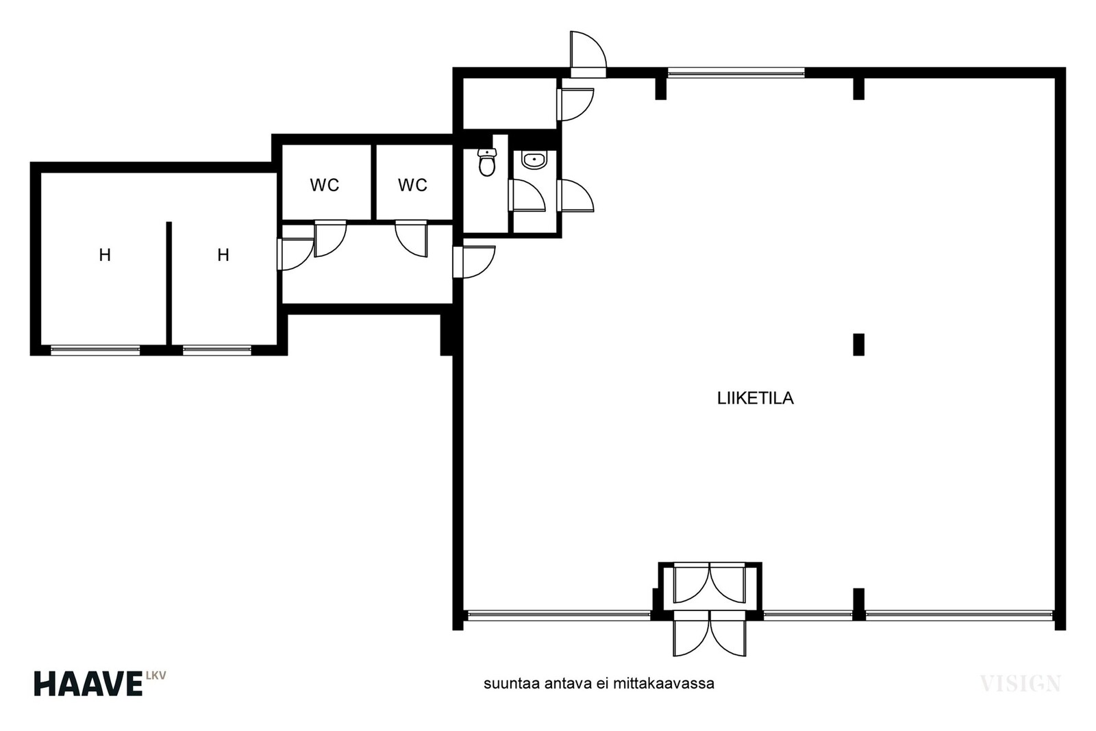 - Huoneiston kuvaus: Liiketila / 2h, 2 x wc ja työtila (kellarissa)