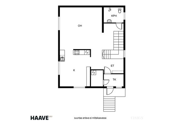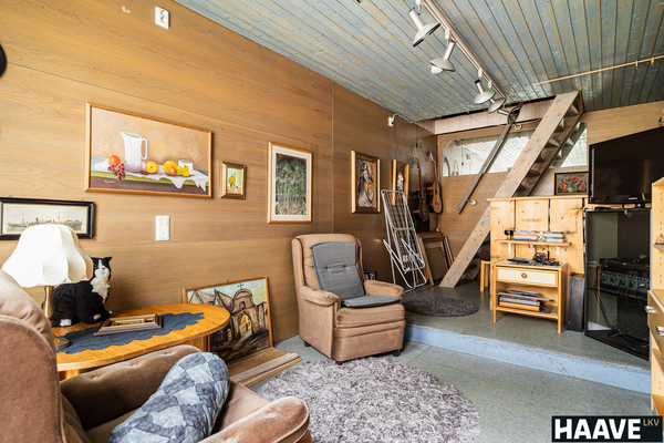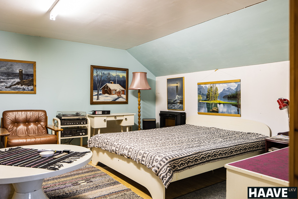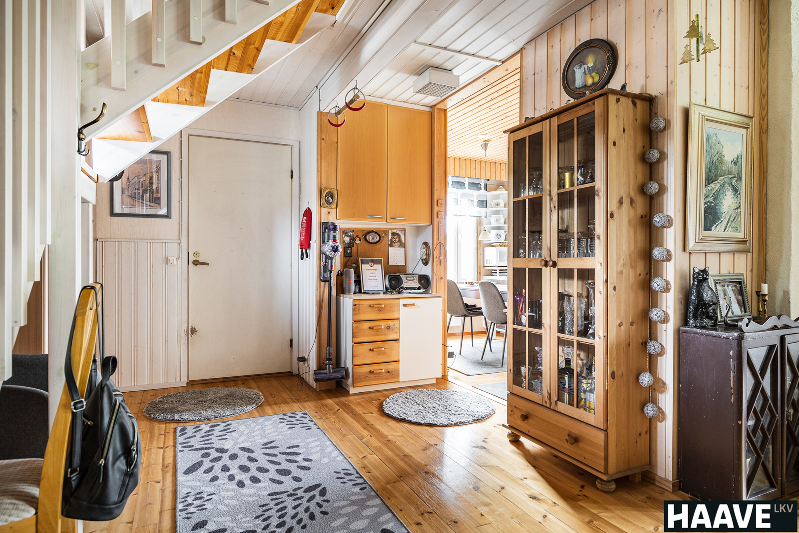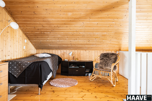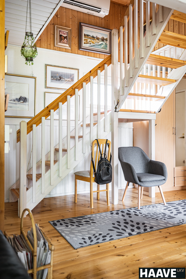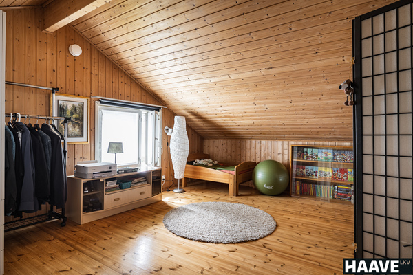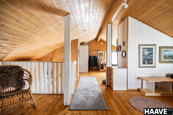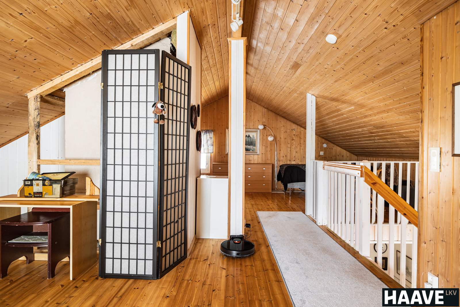 Yläkerta on tällä hetkellä avointa tilaa, mutta siellä on mahdollisuus muokata 2–3 makuuhuonetta tarpeen mukaan – tilaa ja muunneltavuutta löytyy!