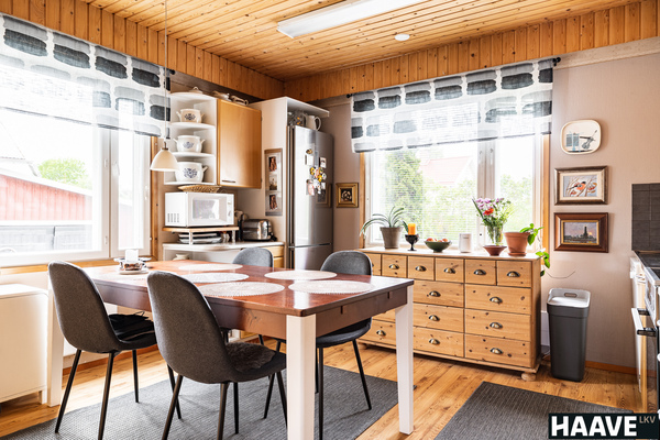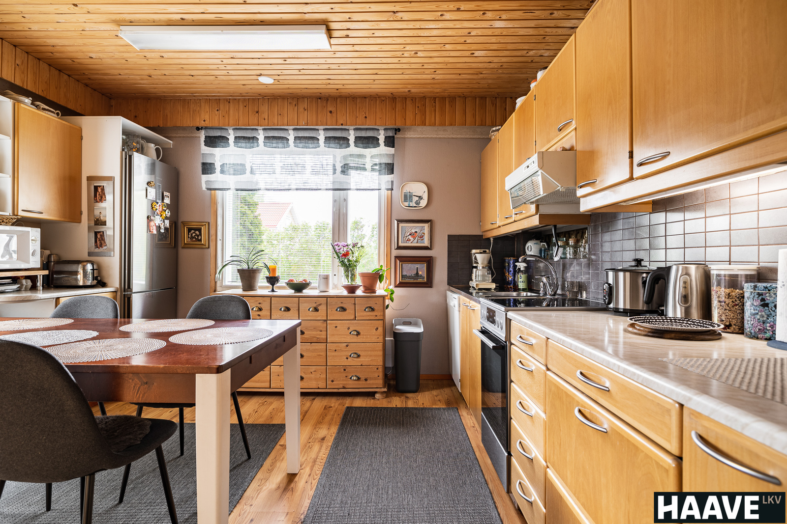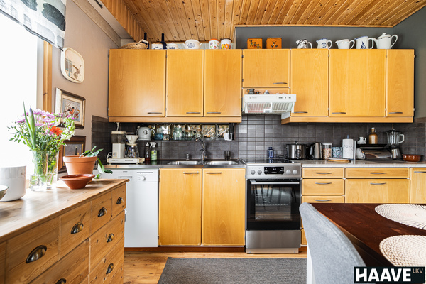 Keittiö on kodikas ja toimiva, kodikas paikka yhdessäoloon.