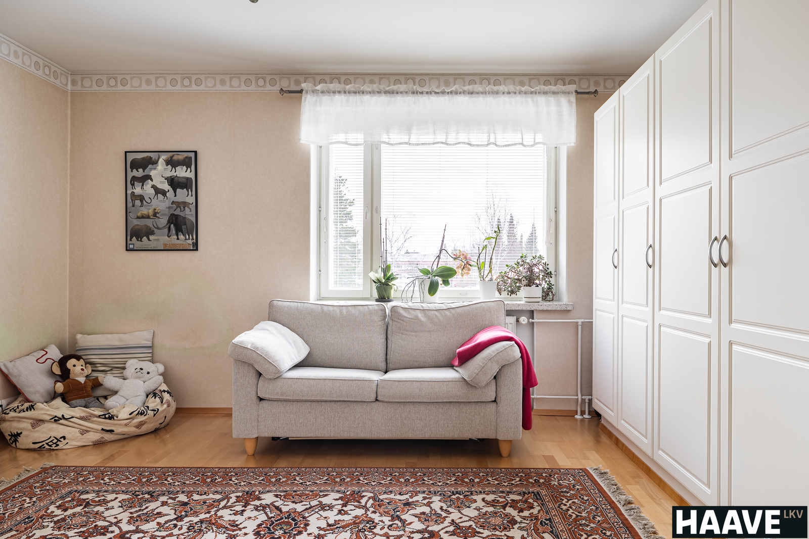 Tämä koti sopii erinomaisesti lapsiperheelle, sillä täältä löytyy neljä tilavaa makuuhuonetta, jotka tarjoavat toimivat tilat niin perheenjäsenille kuin työhuoneeksi.