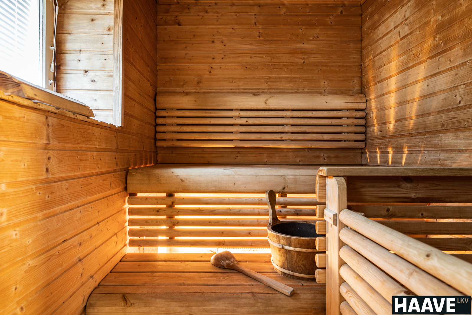 Arjen luksusta tuovat oma sauna, jossa on mukava rentoutua päivän päätteeksi.
