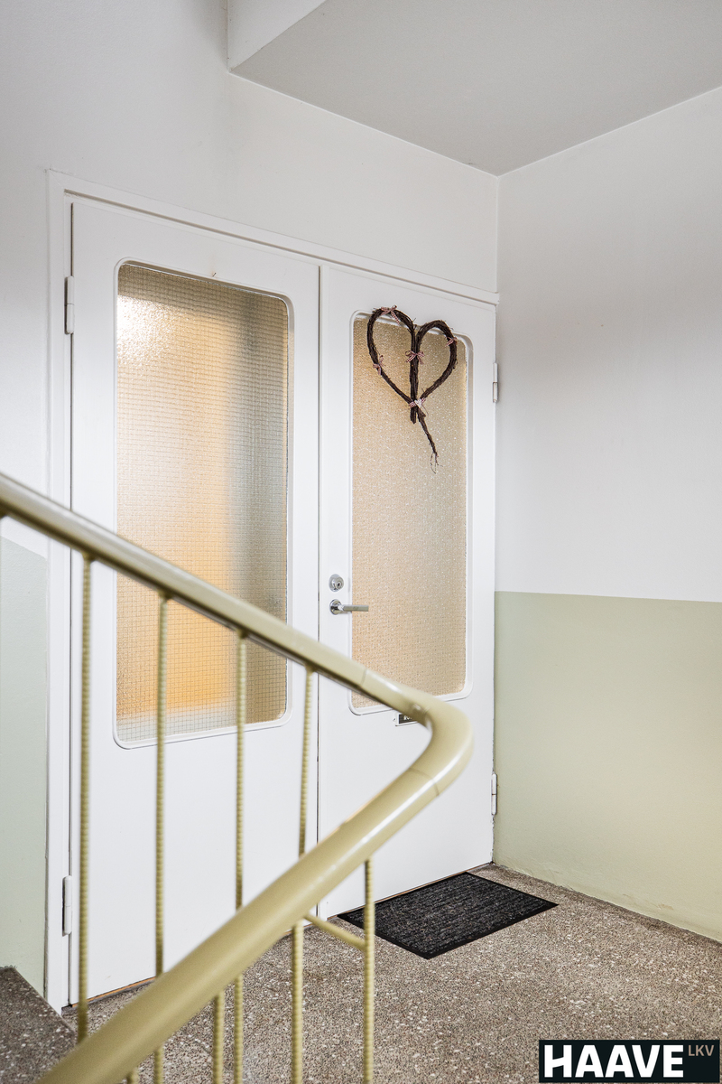 Toisen kerroksen lasiovien takaa löytyy tämä koti.