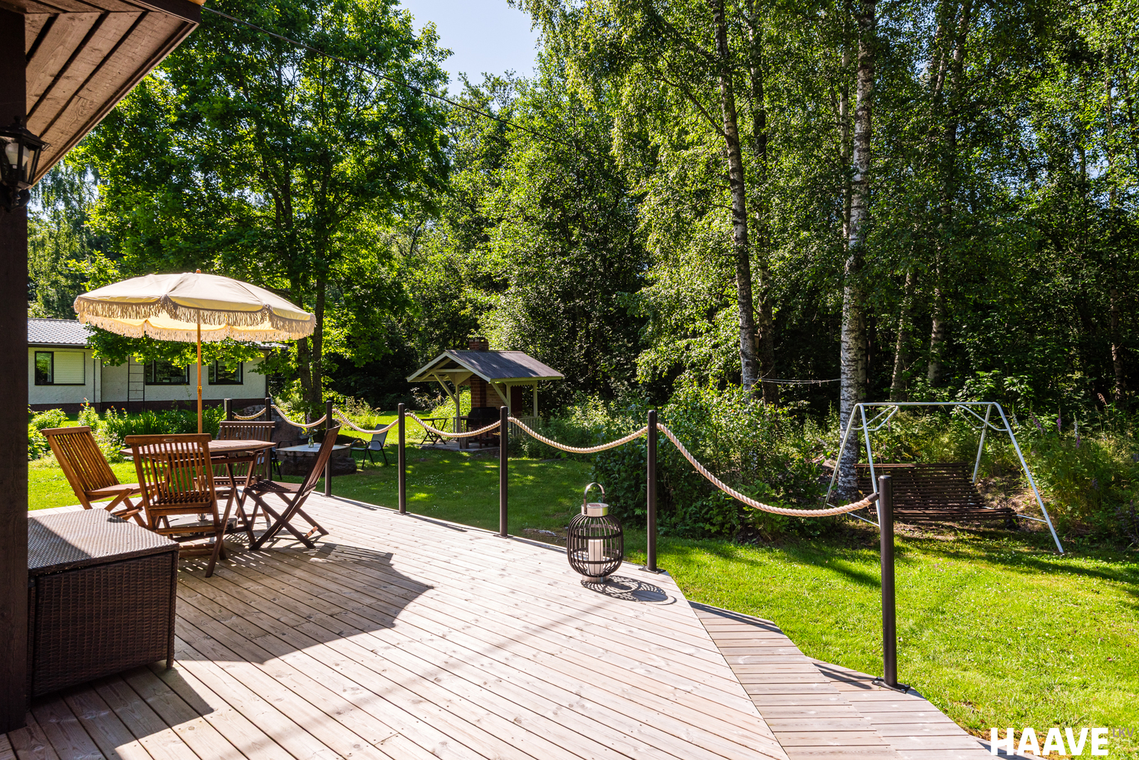 Hyvin hoidettu puolen hehtaarin puutarhatontti, jonne ajelet autolla perille asti.