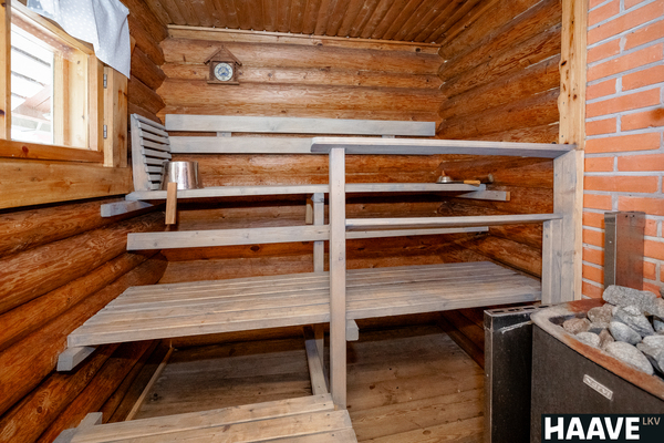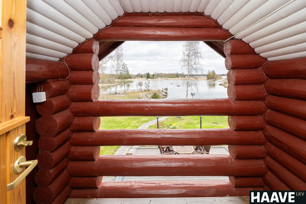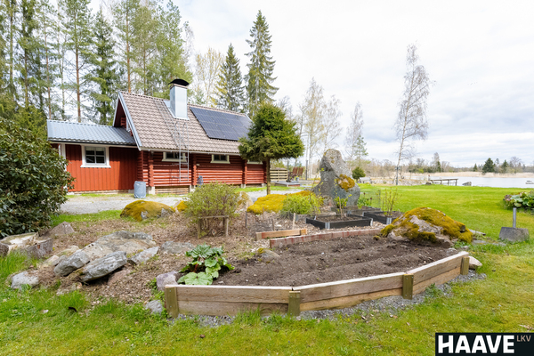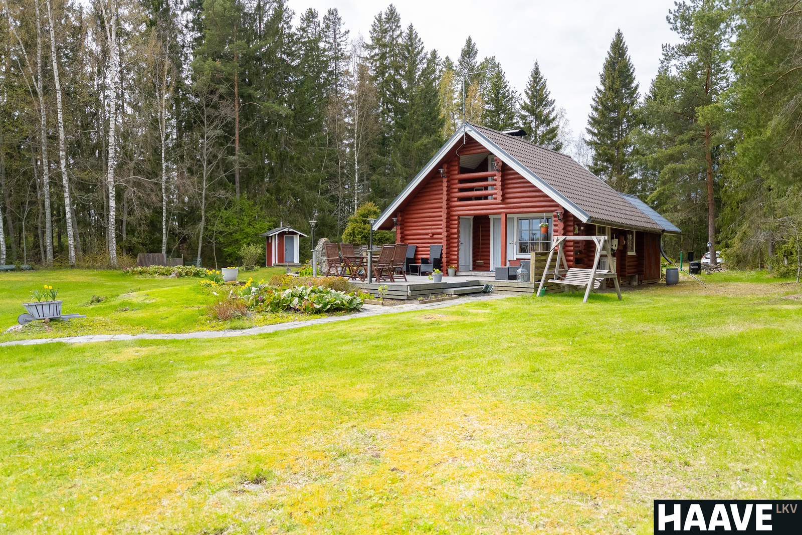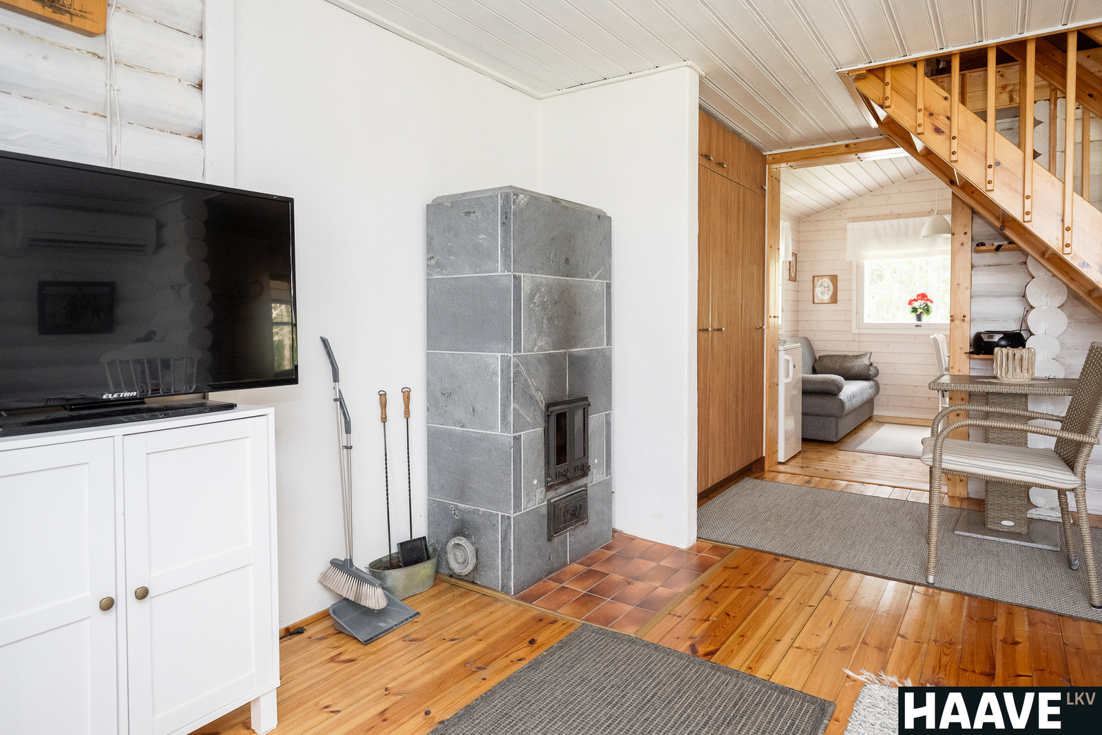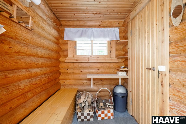 1988 valmistunut ja 2009 laajennettu hyväkuntoinen pyöröhirsimökki, jossa keittiö, olohuone, pukuhuone, pesuhuone, sauna ja veranta. Yläkerrassa makuuhuone, jossa kesäwc ja parveke. Olohuoneessa varaava takka ja ilmalämpäpumppu.