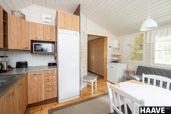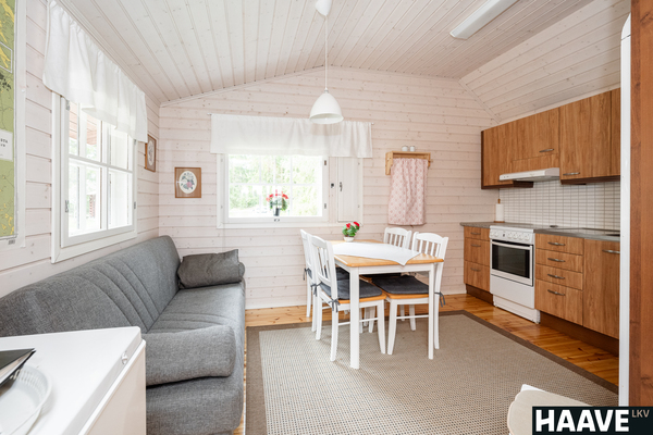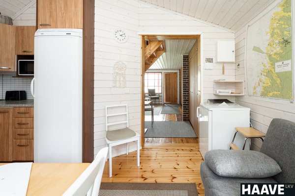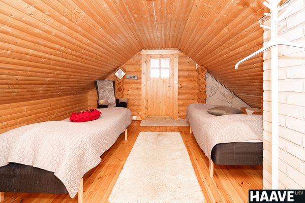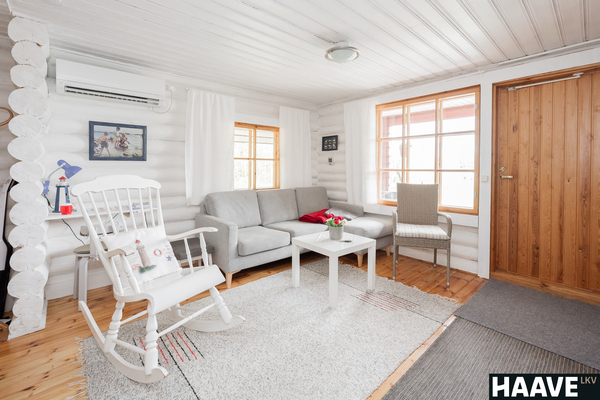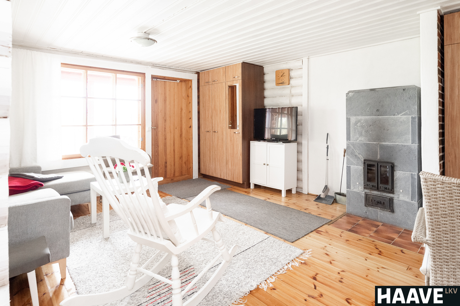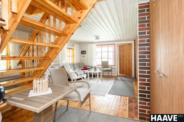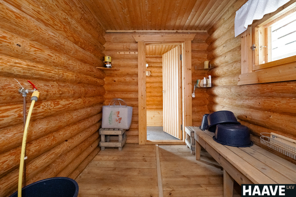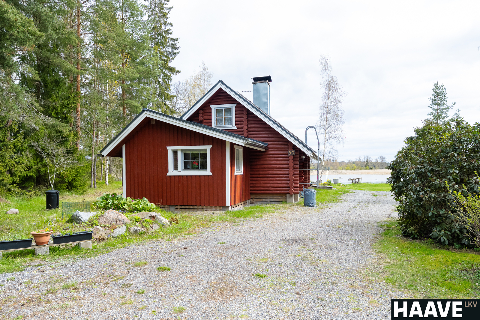 1988 valmistunut ja 2009 laajennettu hyväkuntoinen pyöröhirsimökki, jossa keittiö, olohuone, pukuhuone, pesuhuone, sauna ja veranta. Yläkerrassa makuuhuone, jossa kesäwc ja parveke. Olohuoneessa varaava takka ja ilmalämpäpumppu.