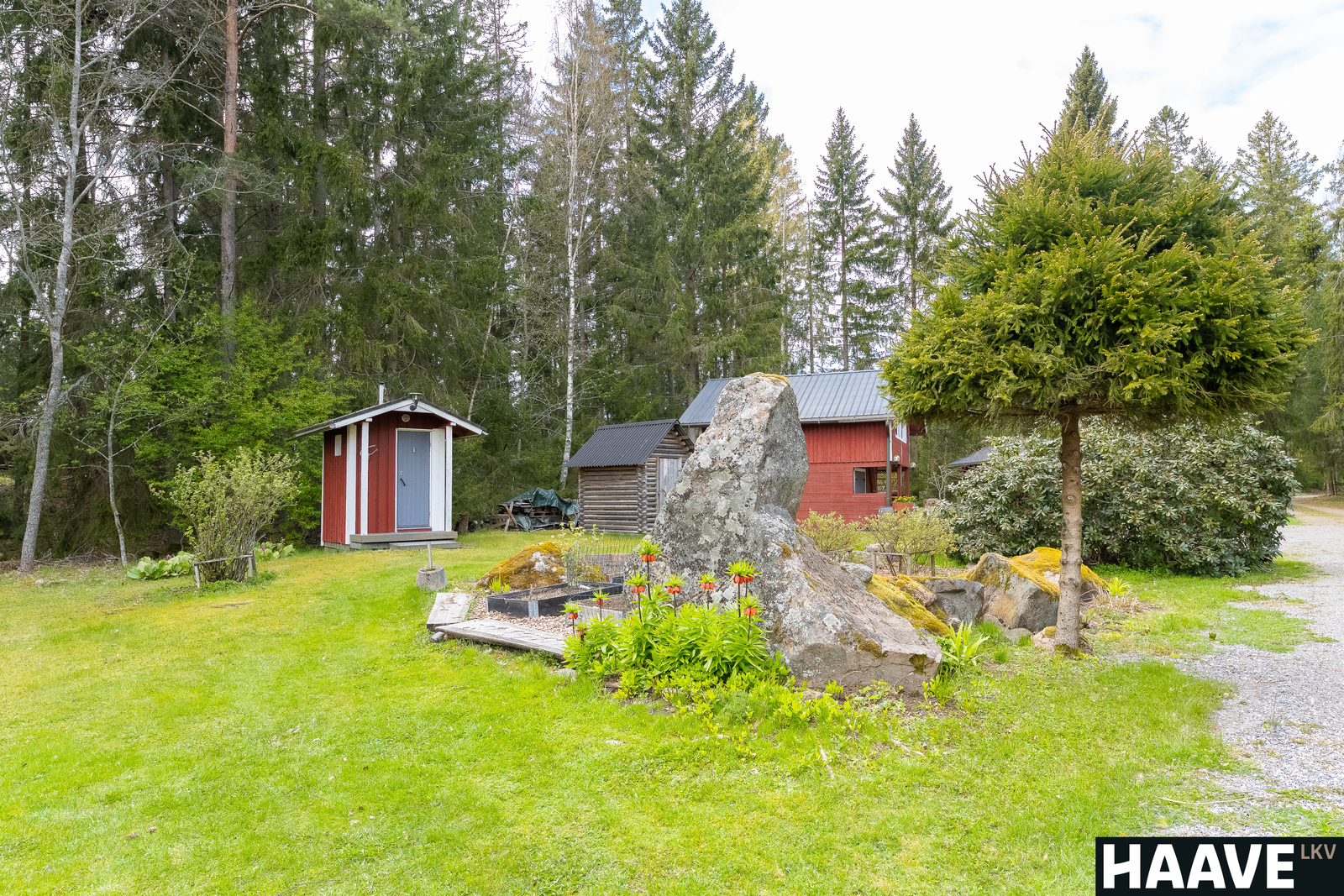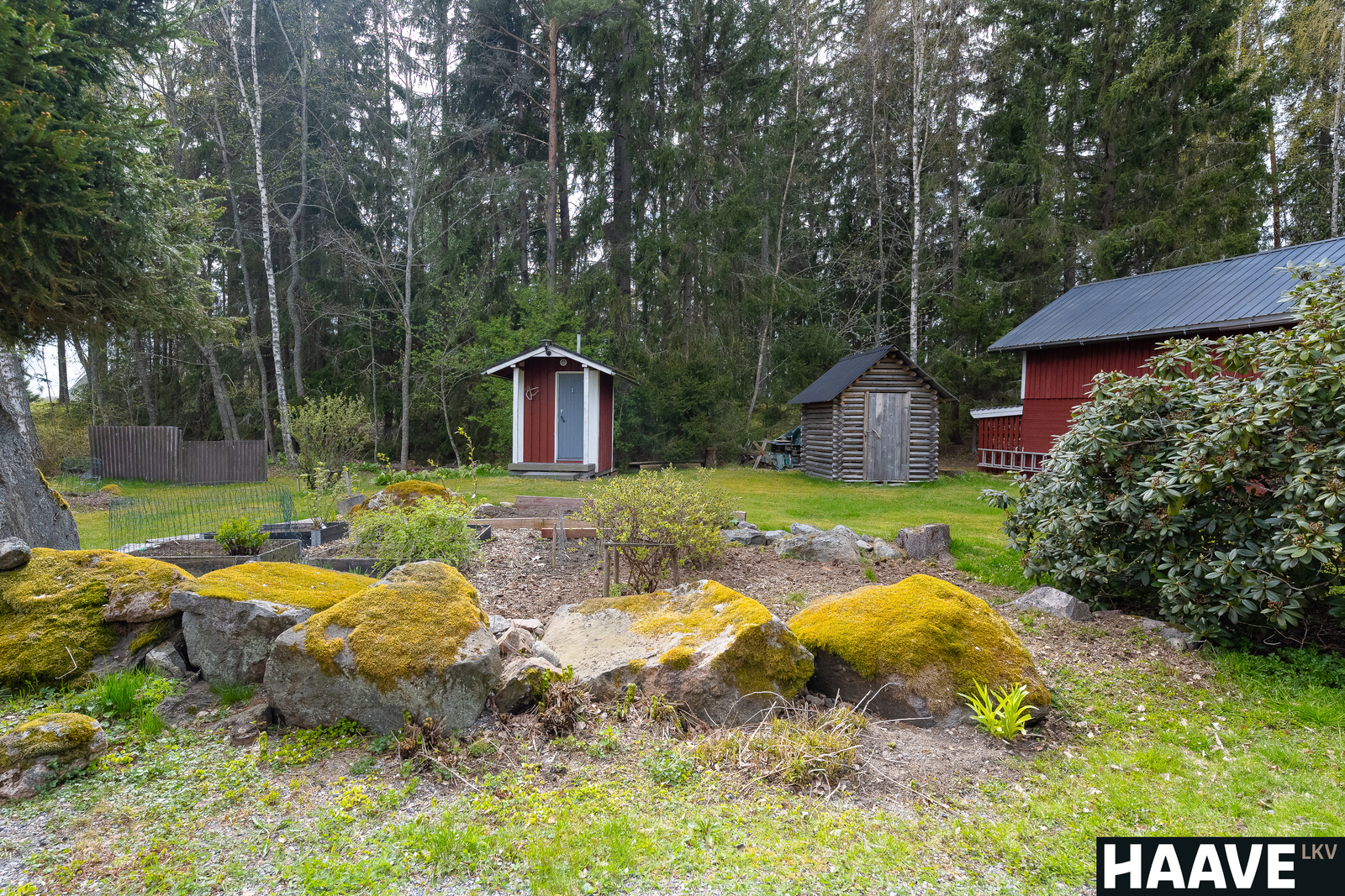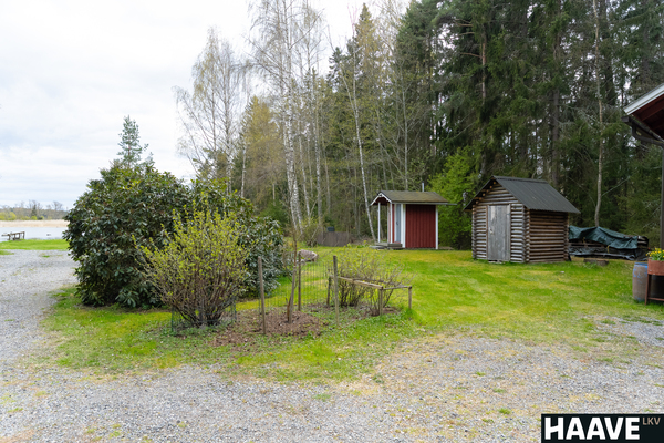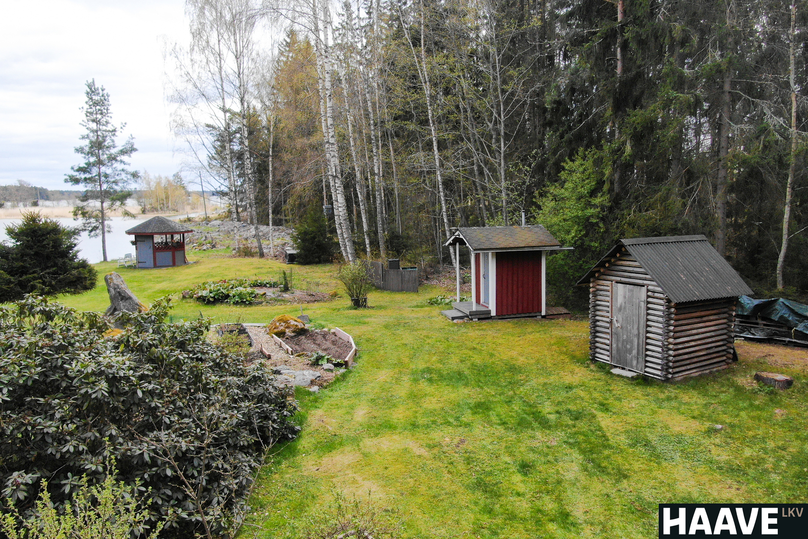 Pihalla aittarakennus, jossa tilava varastohuone ja yläkerrassa makuuhuone, joka lämpeää ilmalämpöpumpulla. Lisäksi kesäwc.