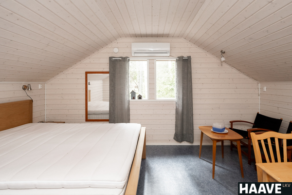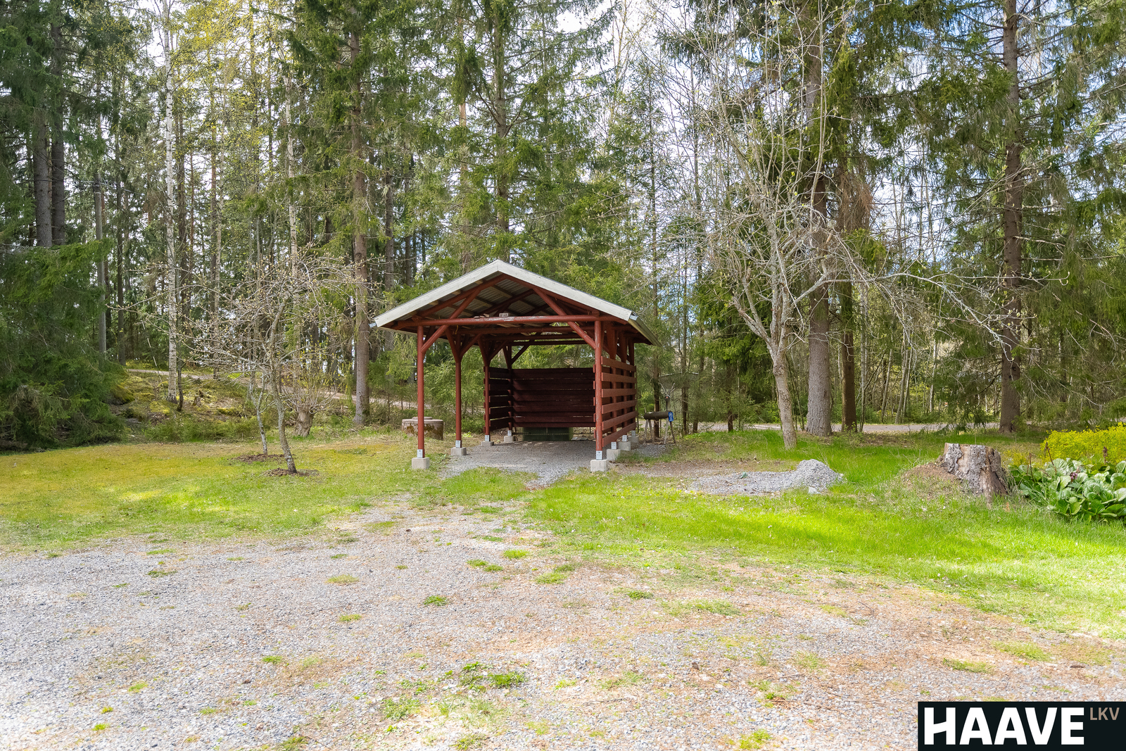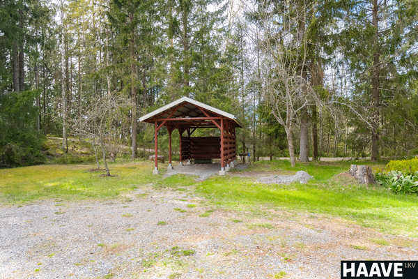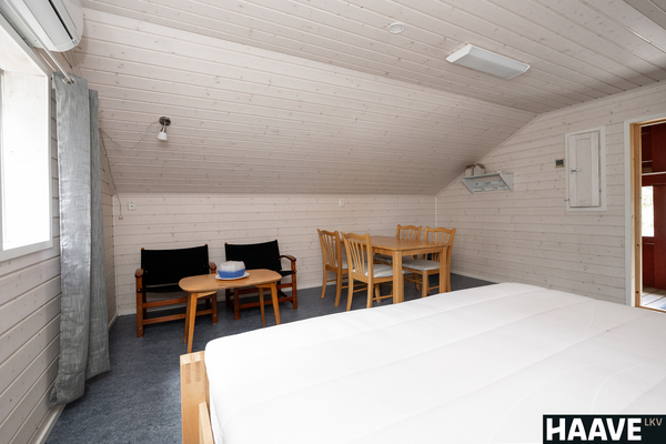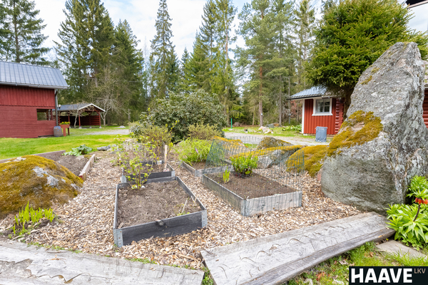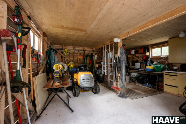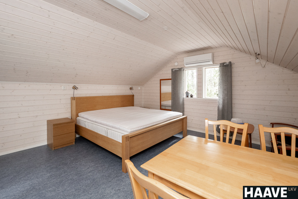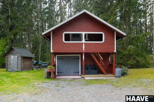 Pihalla aittarakennus, jossa tilava varastohuone ja yläkerrassa makuuhuone, joka lämpeää ilmalämpöpumpulla. Lisäksi kesäwc.
