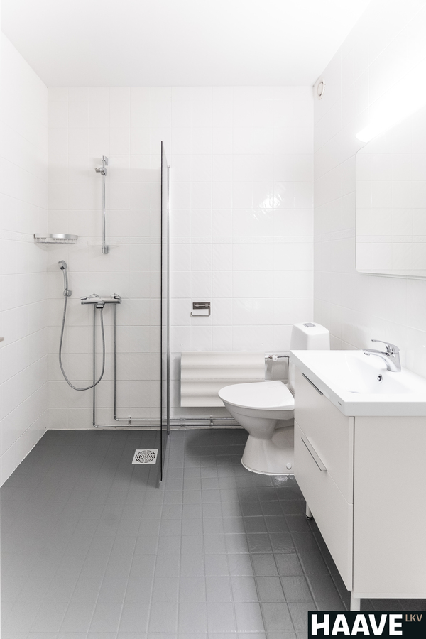 - Kylpyhuoneen kuvaus: Kylpyhuoneen kalusteet uusittu 2026 ja kaakelit maalattu