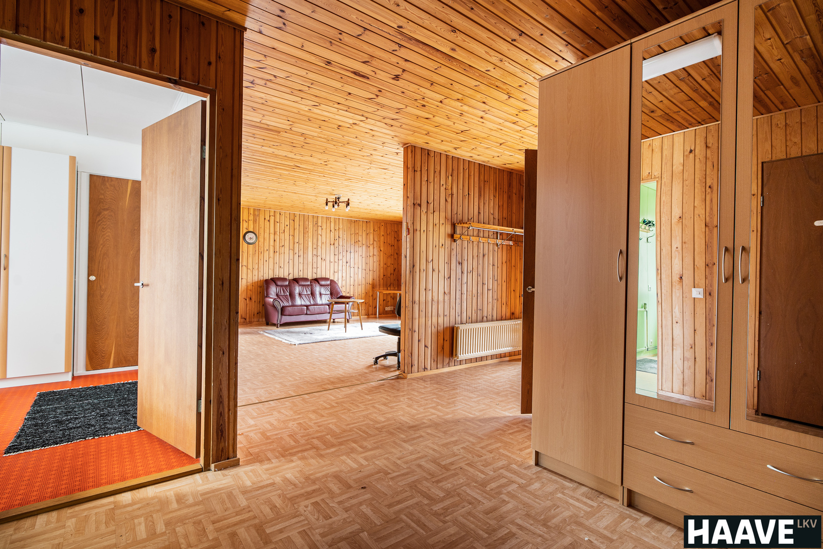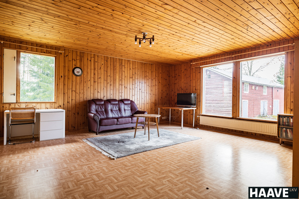 Päärakennus on kunnianarvoisa ja vahvarakenteinen kokonaisuus, jonka vanha osa on vuodelta 1949 ja laajennus vuodelta 1978. Tässä suuressa kaksikerroksisessa talossa on tilaa jopa 150 m². Vanhan osan vesikatto on uusittu. Koti on suunniteltu suurelle perheelle tai kahden sukupolven asumiseen.