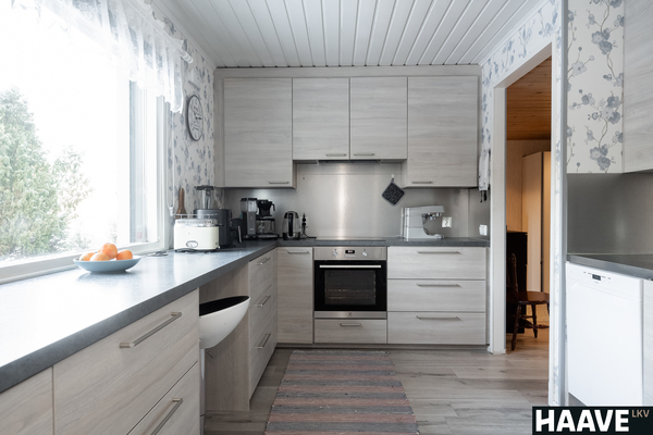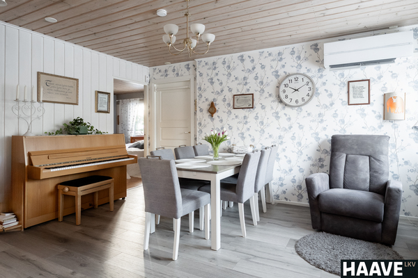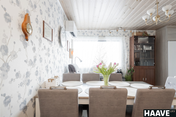Tämä Rauman Lapissa sijaitseva, iso omakotitalo tarjoaa puitteet, joita on harvoin tarjolla. Tässä kodissa on jopa kahdeksan makuuhuonetta ja kolme erillistä wc:tä, jotka mahdollistavat suuren perheen sujuvan arjen, etätyöpisteet ja harrastehuoneet saman katon alla. Huonejakoja yhdistelemällä voit suunnitella tiloja perheesi tarpeiden mukaan. Esimerkiksi ruokailutilan ja makuuhuoneen välinen seinä on purettavissa, joka mahdollistaa tilan muutoksen vaikkapa olohuoneeksi tai isommaksi ruokailuhuoneeksi. Kodin tilava ja toimiva keittiö on remontoitu vuonna 2019. Kotia on laajennettu vuonna 2003 autotallin muutoksella asuintiloiksi, josta löytyy kolme makuuhuonetta, oleskelutila ja wc. Tähän tilaan on oma sisäänkäynti. Energiatehokkuus on tässä kohteessa huomioitu monella tavalla. Kolme varaavaa takkaa luovat paitsi tunnelmaa, myös säästöä sähkönkulutukseen, kuten myös kodin kaksi ilmalämpöpumppua sekä vuonna 2024 katolle asennetut aurinkopaneelit.