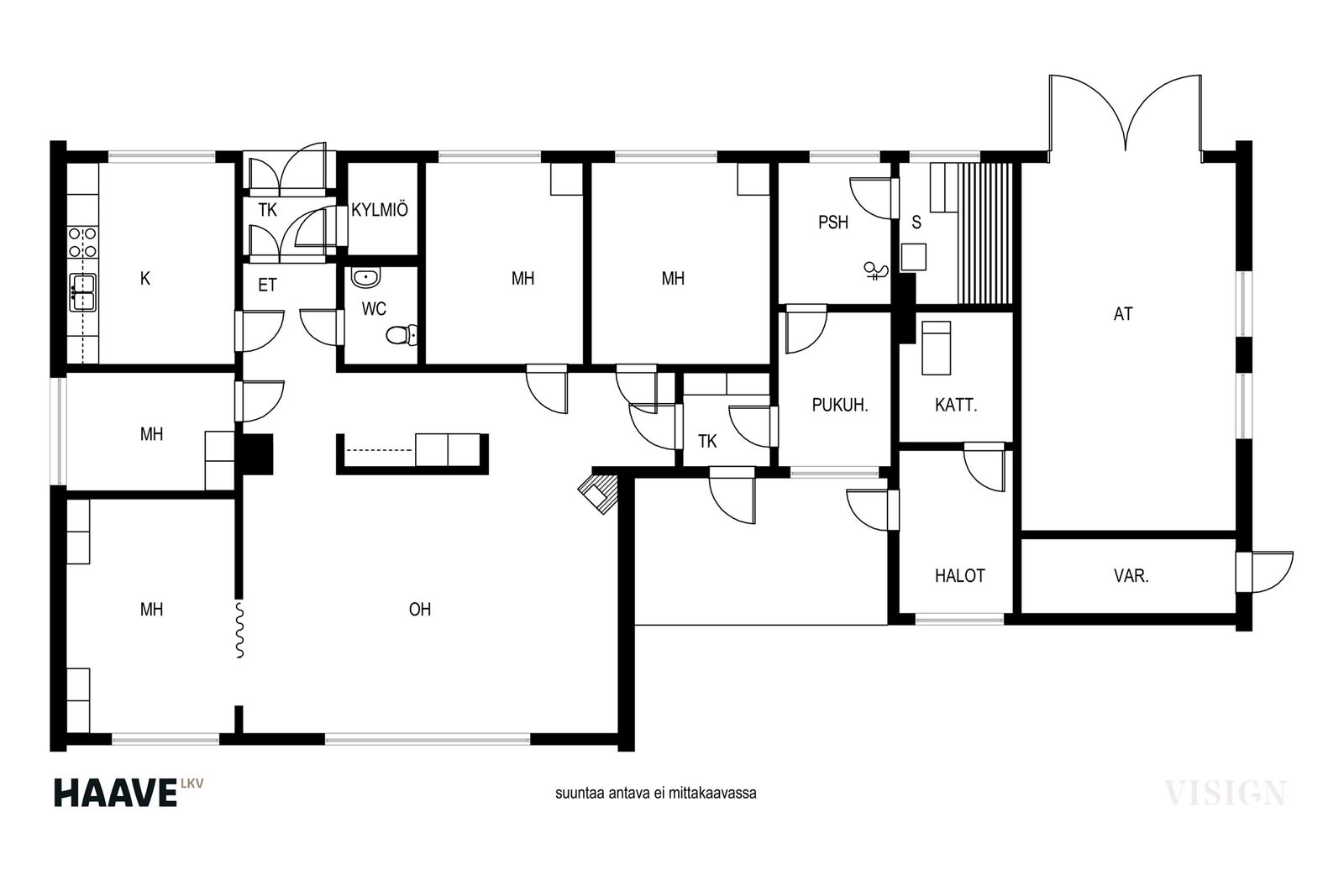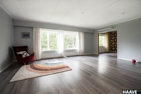 1972 valmistunut 1-tasoinen omakotitalo, jossa keittiö, olohuone, 4 makuuhuonetta, kylpyhuone, sauna ja erillinen wc sekä autotalli.