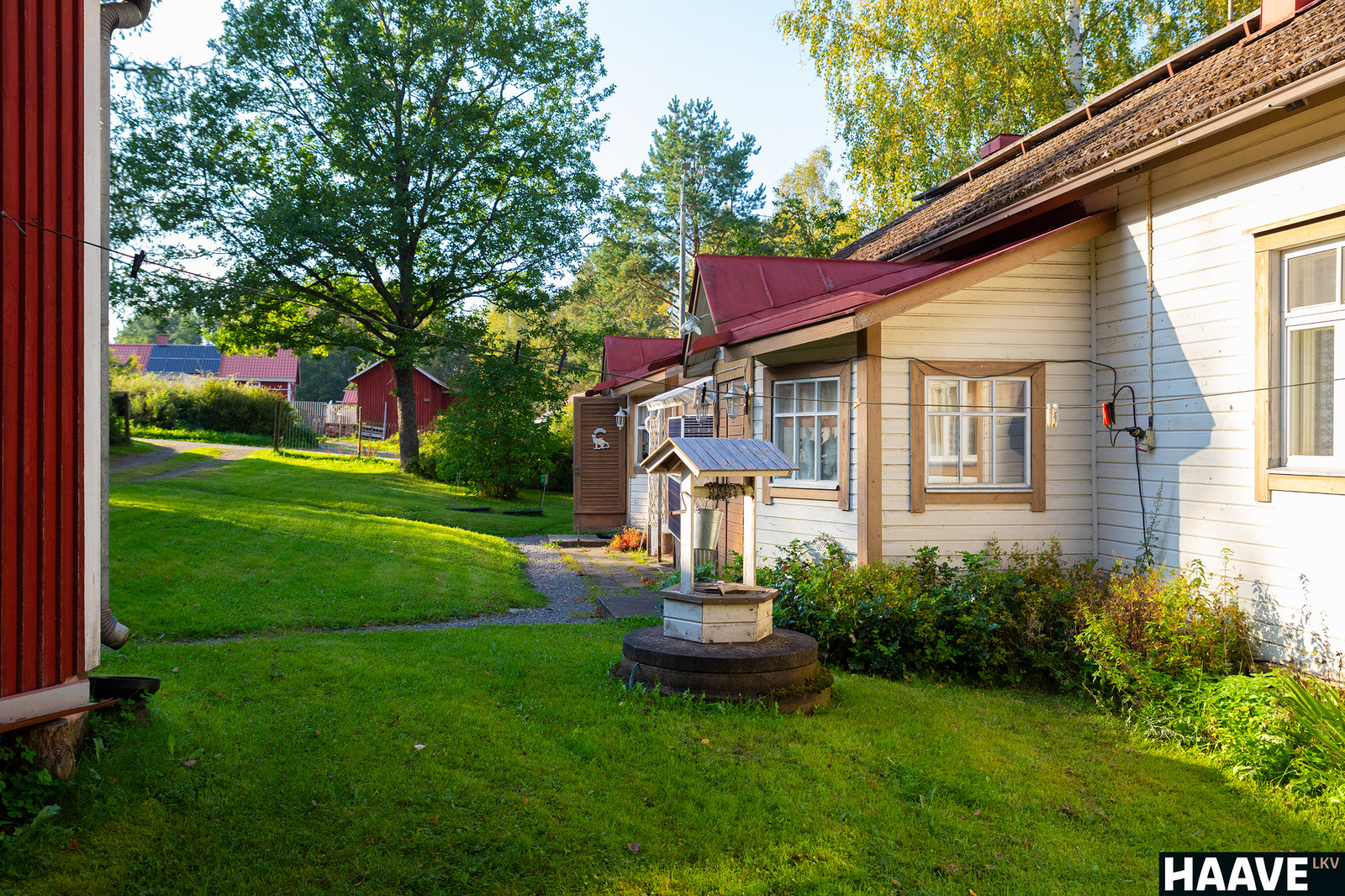 Päärakennuksessa on kaksi viehättävää kuistia, tilava keittiö, makuuhuone, tunnelmallinen sali tiilitakalla sekä kamari kaakeliuunilla. Lisäksi kiinteistössä on WC.