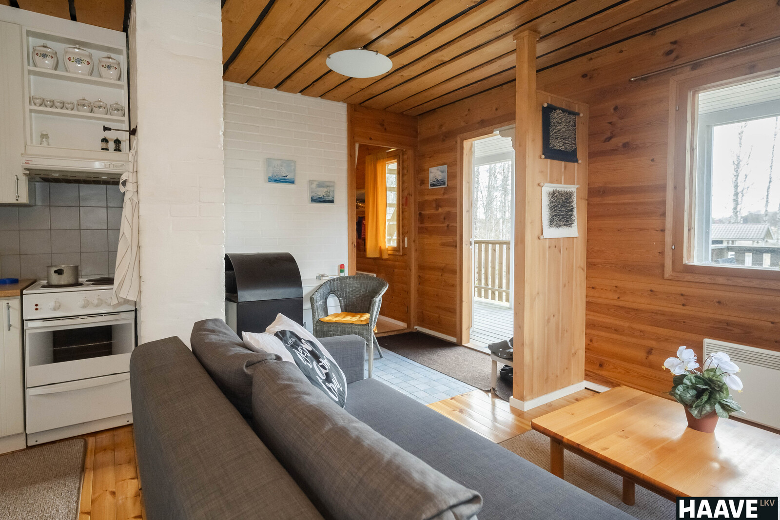 1988 valmistunut kesämökki, jossa tupakeittiö, makuuhuone, suihku ja tilava avoin yläkerta.