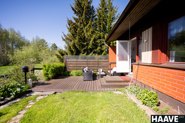 Asuntoon kuuluu lisäksi autokatos ja ulkovarasto.