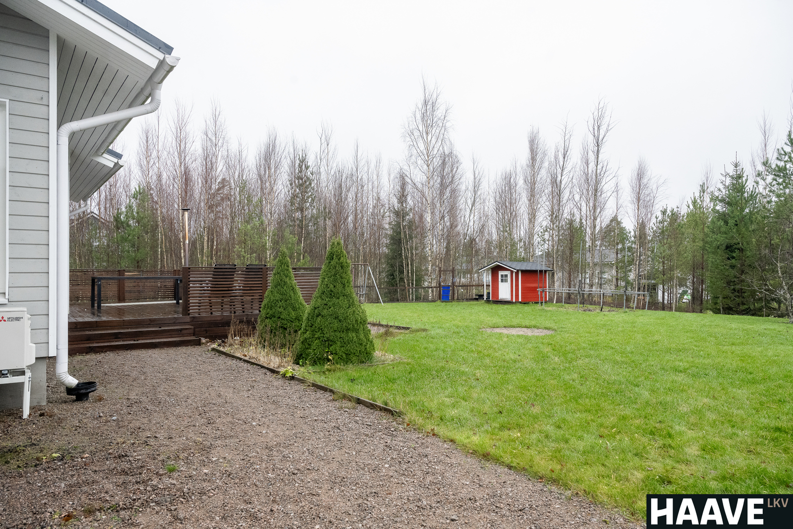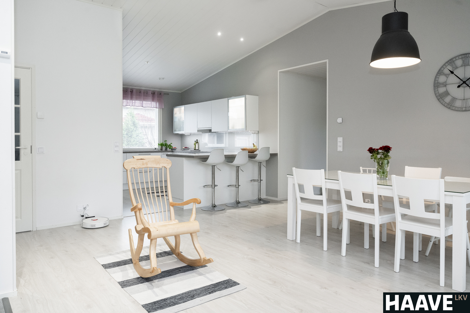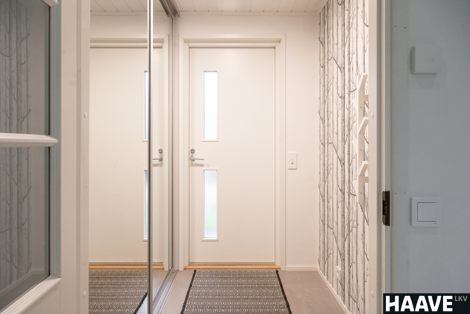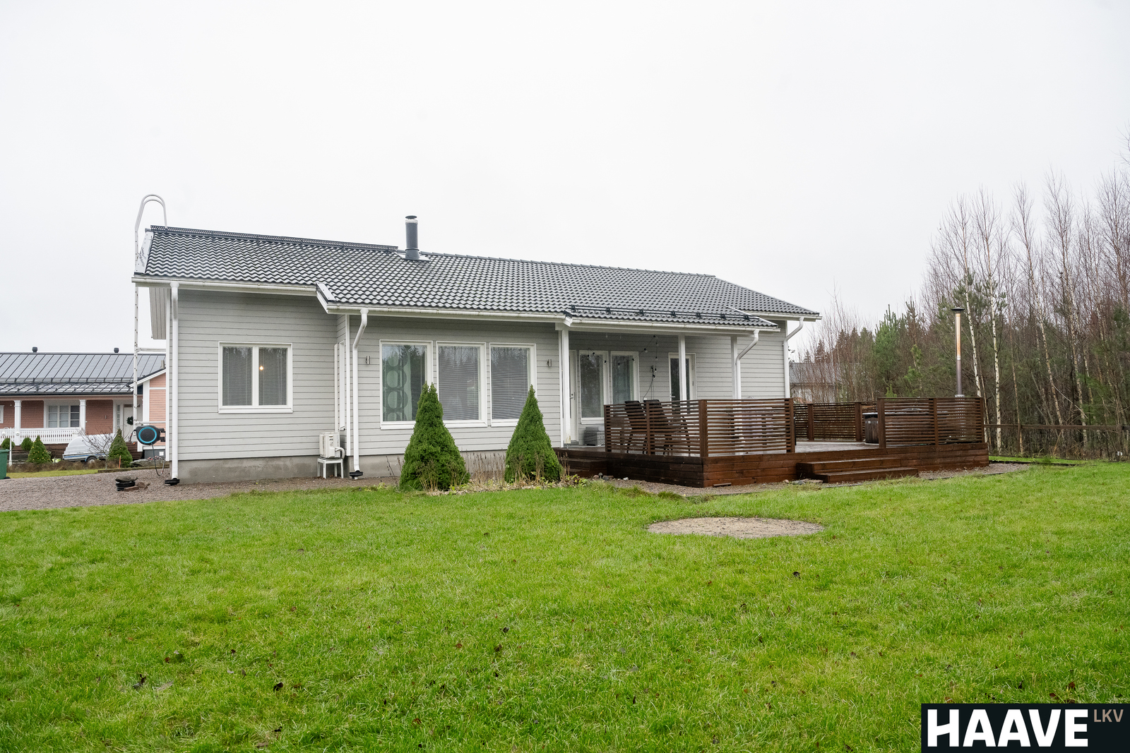 Talossa on erinomaisen toimiva pohjaratkaisu, jossa avara olohuone / tupakeittiö-tila palvelee kodin viihtyisänä keskuksena. Kolme reilun kokoista makuuhuonetta, yhden yhteydessä on vaatehuone. Nykyaikaisen ja energiatehokkaan talon lämmityksen hoitaa poistoilmalämpöpumppu, varaava takka ja ilmalämpöpumppu. Puistokaistaleeseen rajoittuvalla takapihalla on iso terassi, jonka nurkassa komeilee upotettu palju.