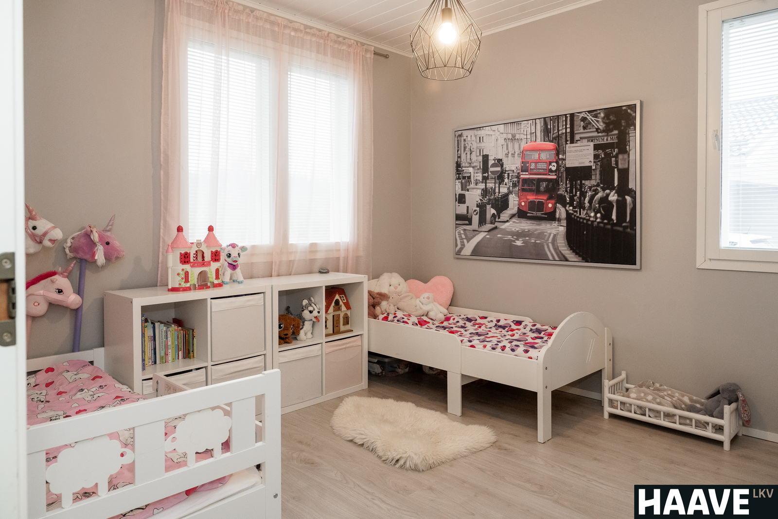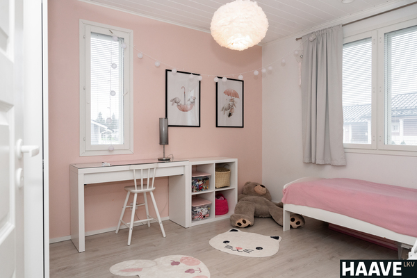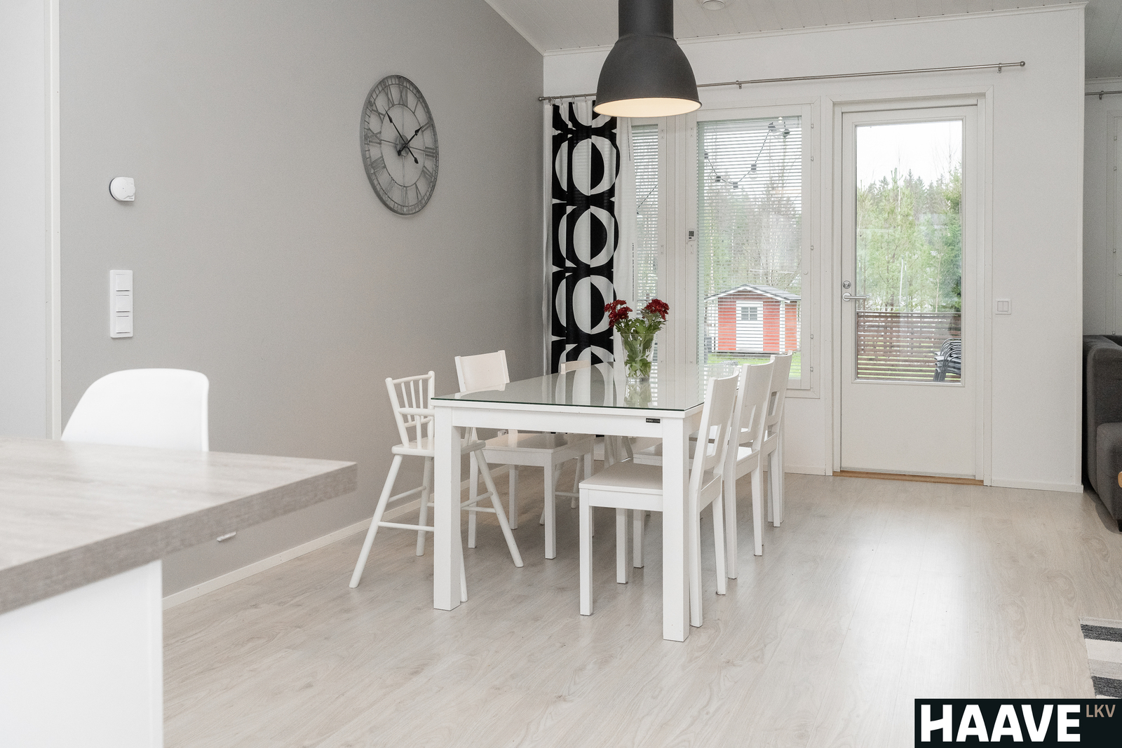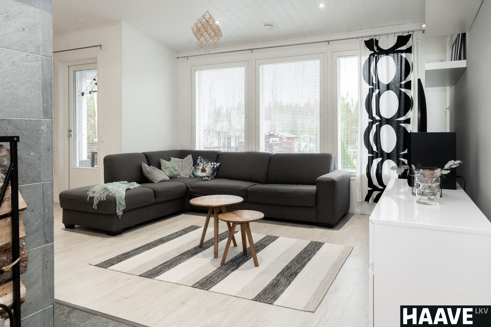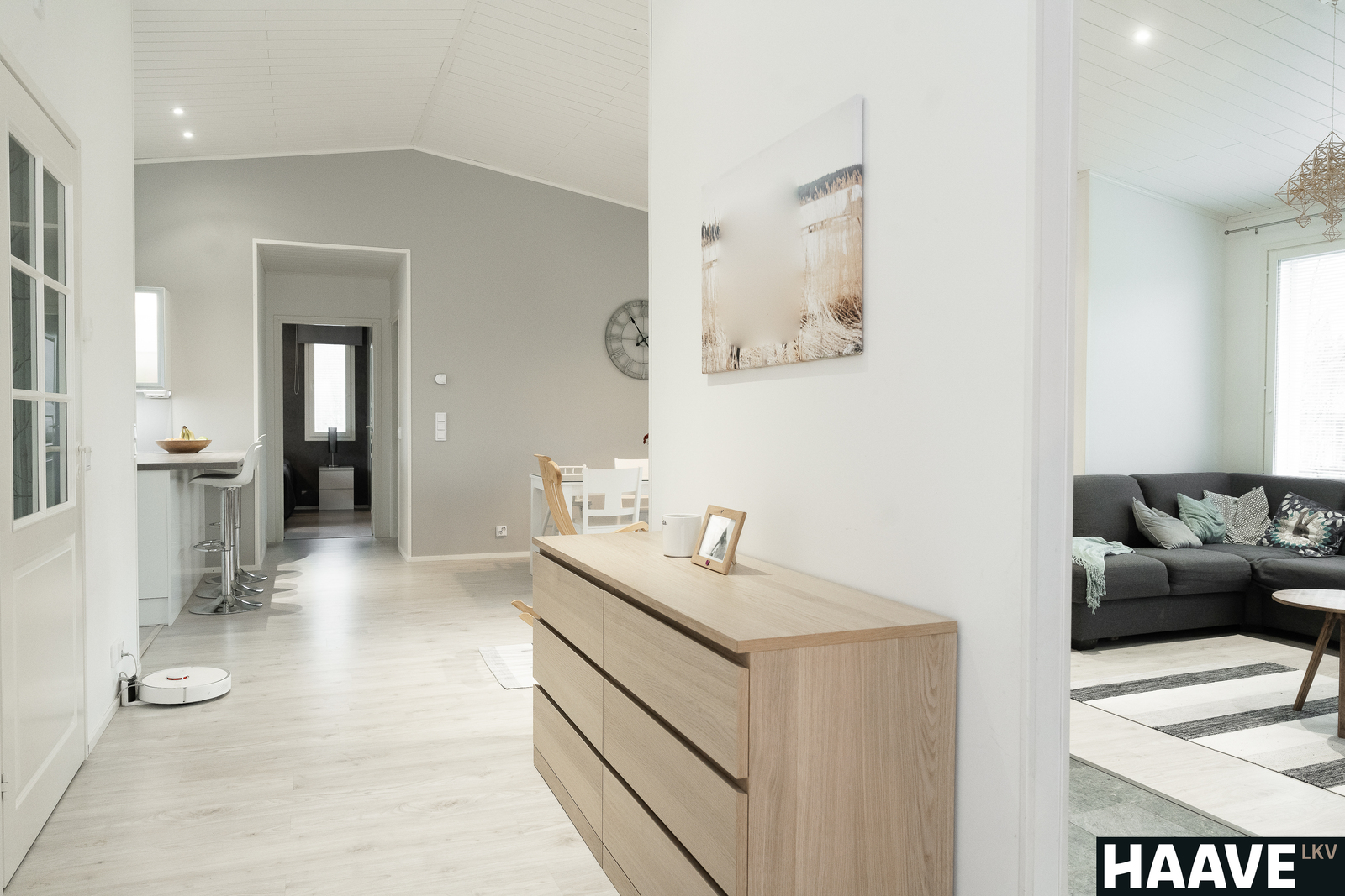 Talossa on erinomaisen toimiva pohjaratkaisu, jossa avara olohuone / tupakeittiö-tila palvelee kodin viihtyisänä keskuksena. Kolme reilun kokoista makuuhuonetta, yhden yhteydessä on vaatehuone. Nykyaikaisen ja energiatehokkaan talon lämmityksen hoitaa poistoilmalämpöpumppu, varaava takka ja ilmalämpöpumppu. Puistokaistaleeseen rajoittuvalla takapihalla on iso terassi, jonka nurkassa komeilee upotettu palju.