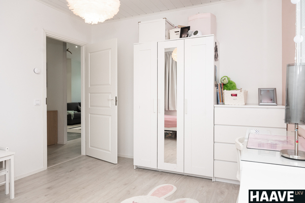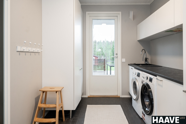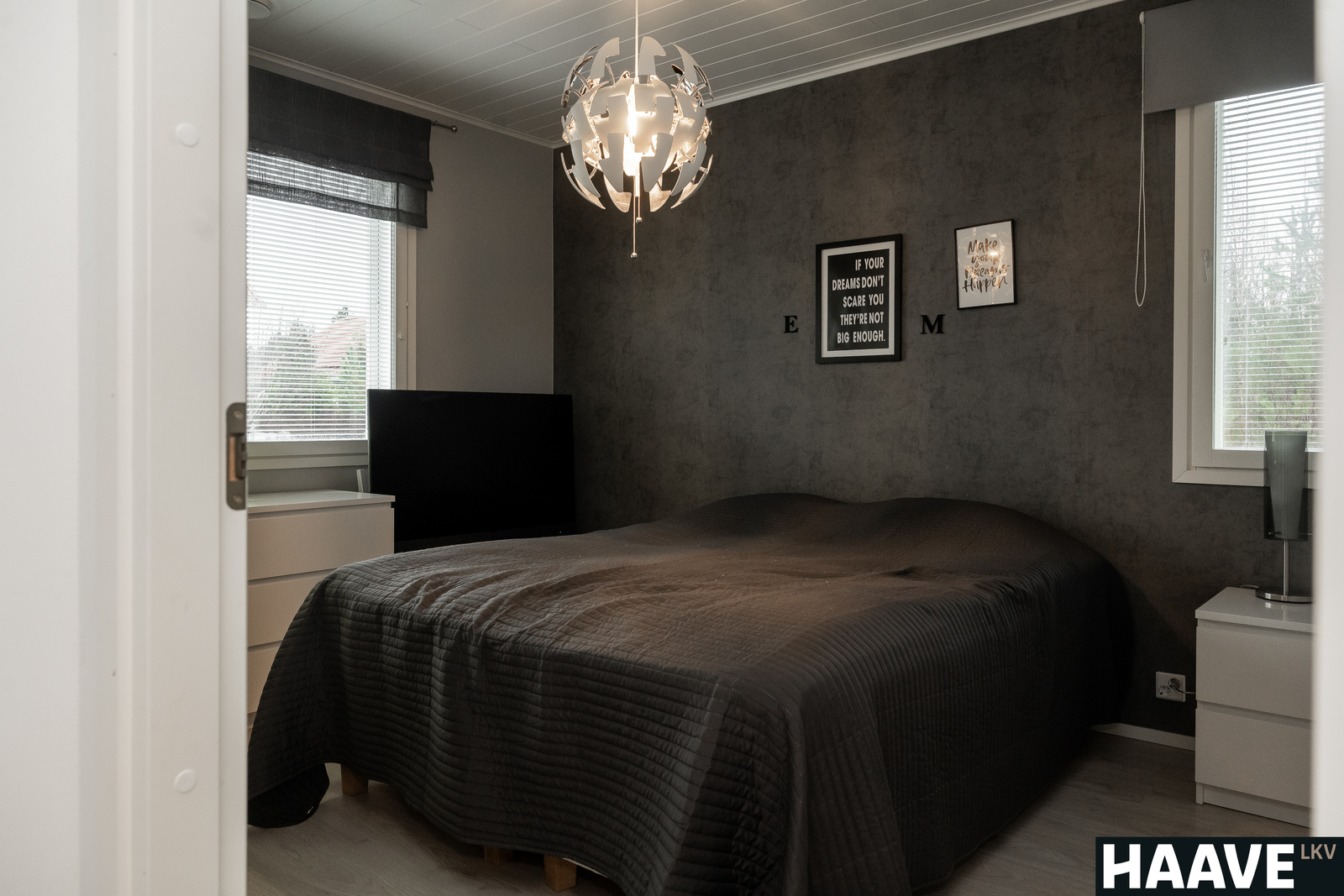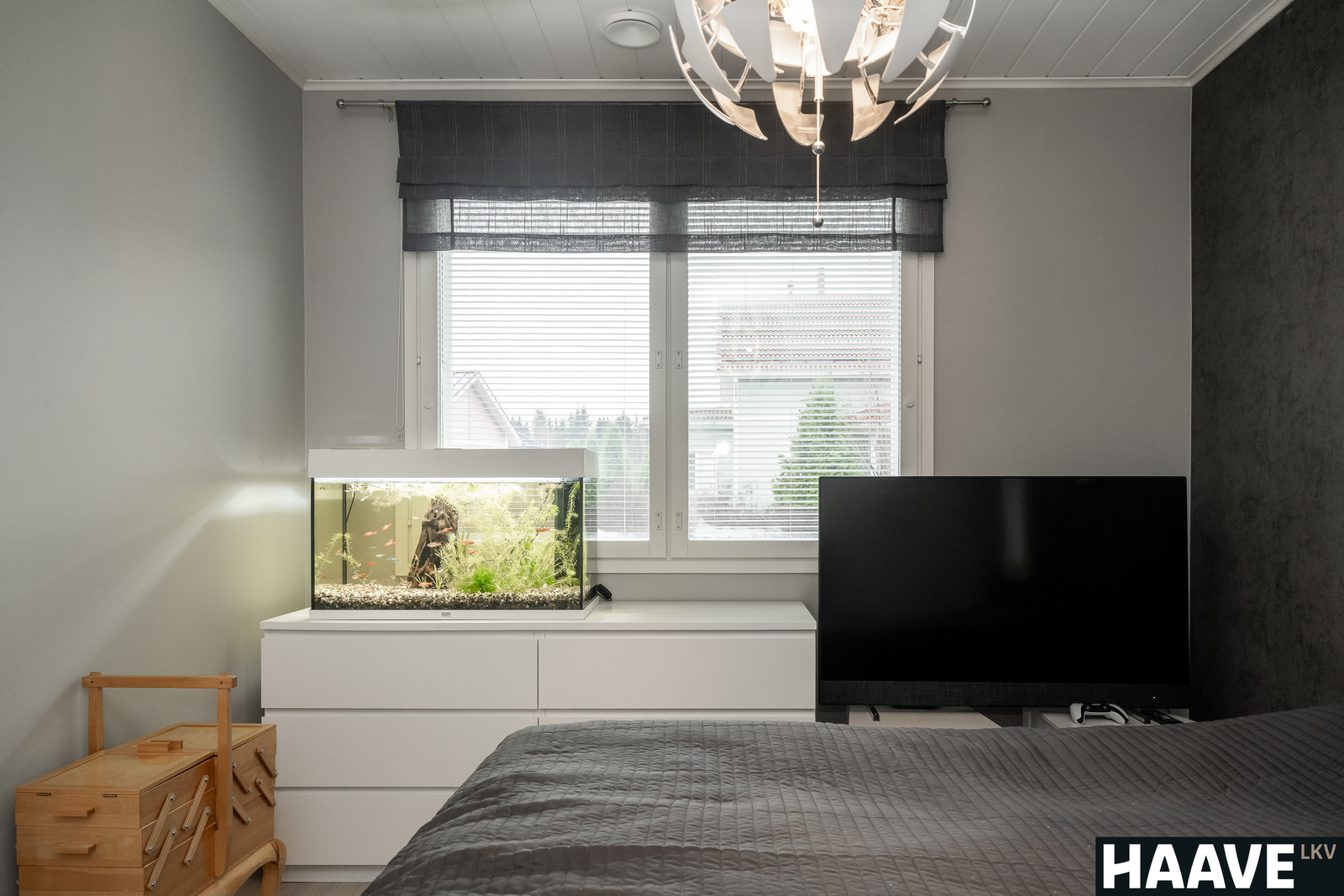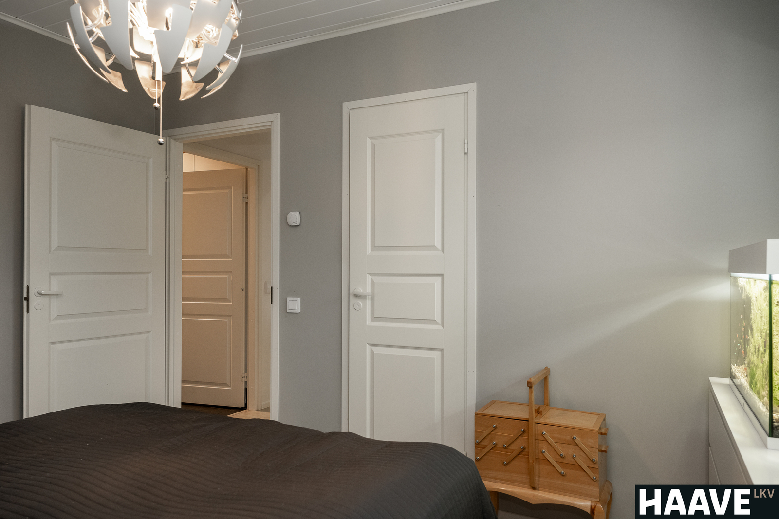 Talossa on erinomaisen toimiva pohjaratkaisu, jossa avara olohuone / tupakeittiö-tila palvelee kodin viihtyisänä keskuksena. Kolme reilun kokoista makuuhuonetta, yhden yhteydessä on vaatehuone. Nykyaikaisen ja energiatehokkaan talon lämmityksen hoitaa poistoilmalämpöpumppu, varaava takka ja ilmalämpöpumppu. Puistokaistaleeseen rajoittuvalla takapihalla on iso terassi, jonka nurkassa komeilee upotettu palju.