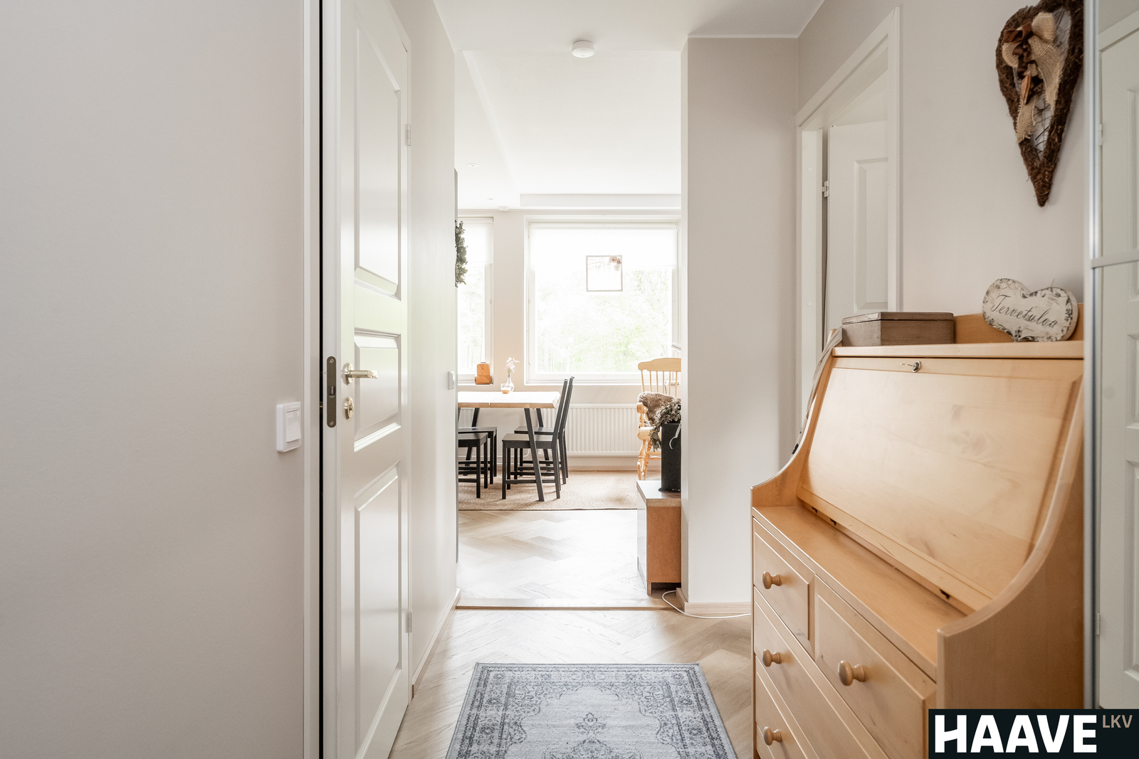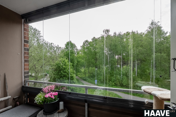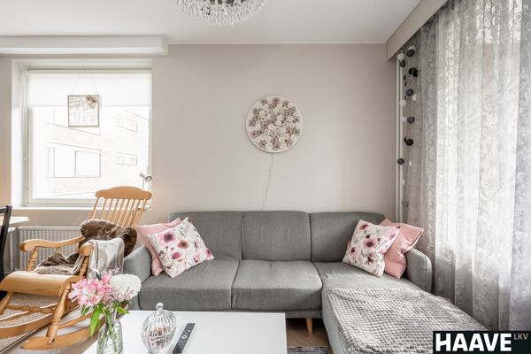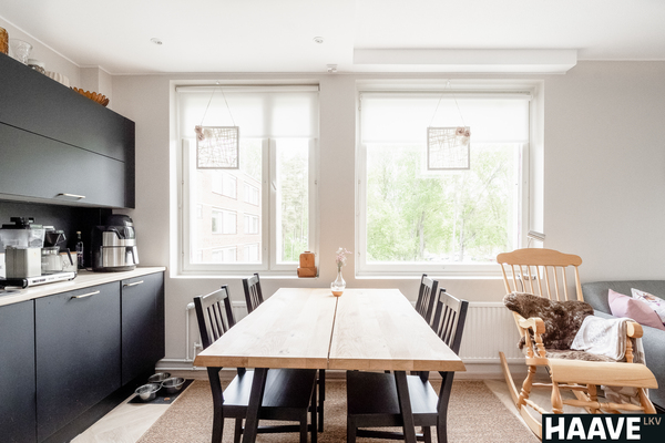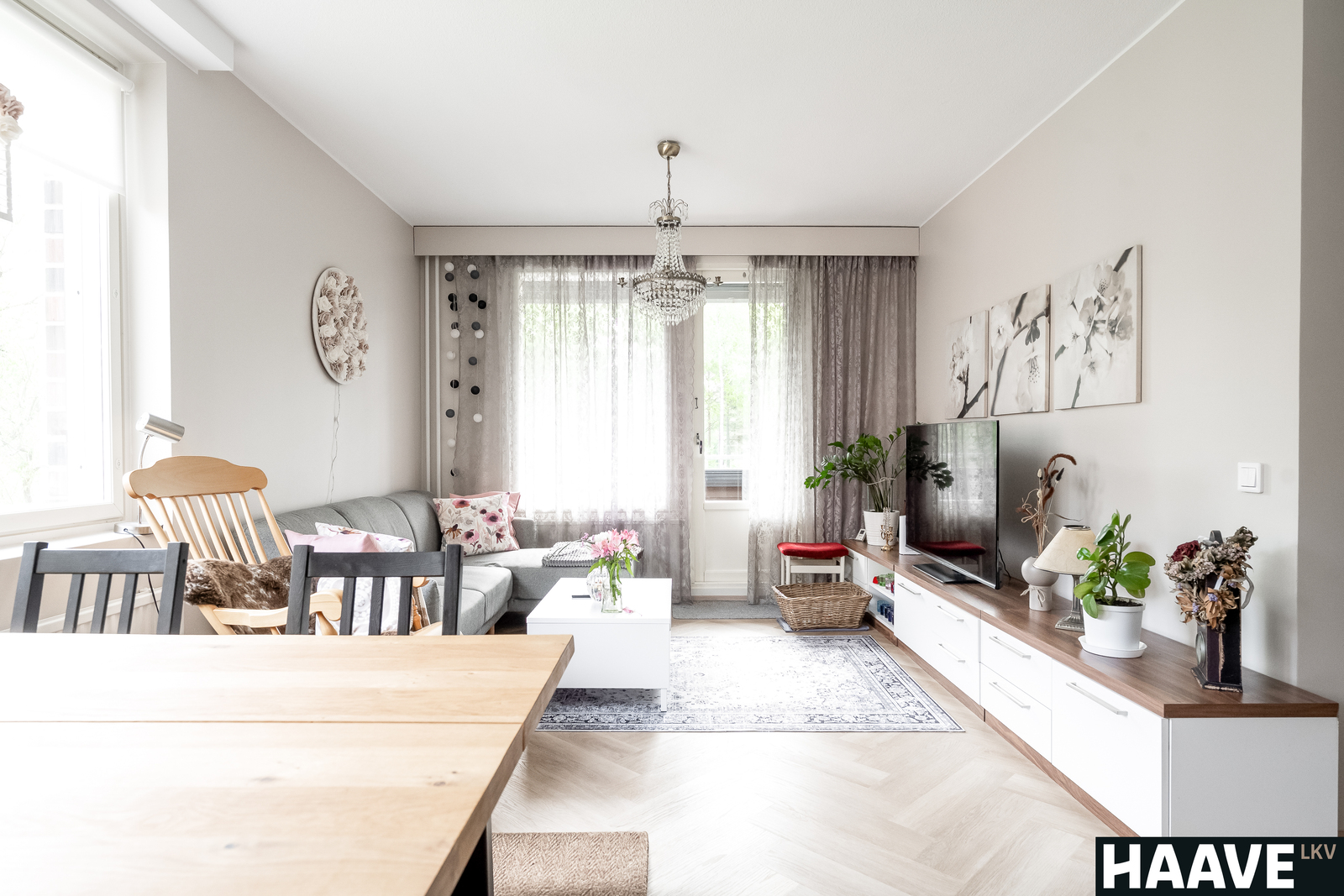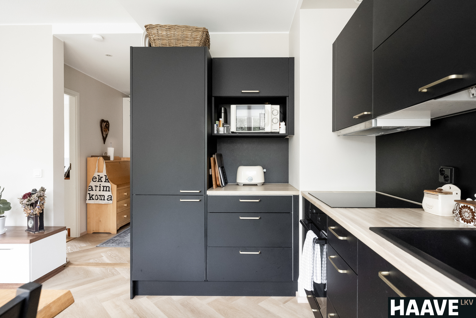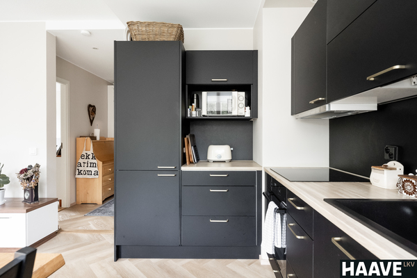 2 krs:n valoisa täysin 2022 remontoitu kulmahuoneisto, jossa avoin keittiö/olohuone, makuuuhuone, kylpyhuone/wc ja lasitettu parveke.