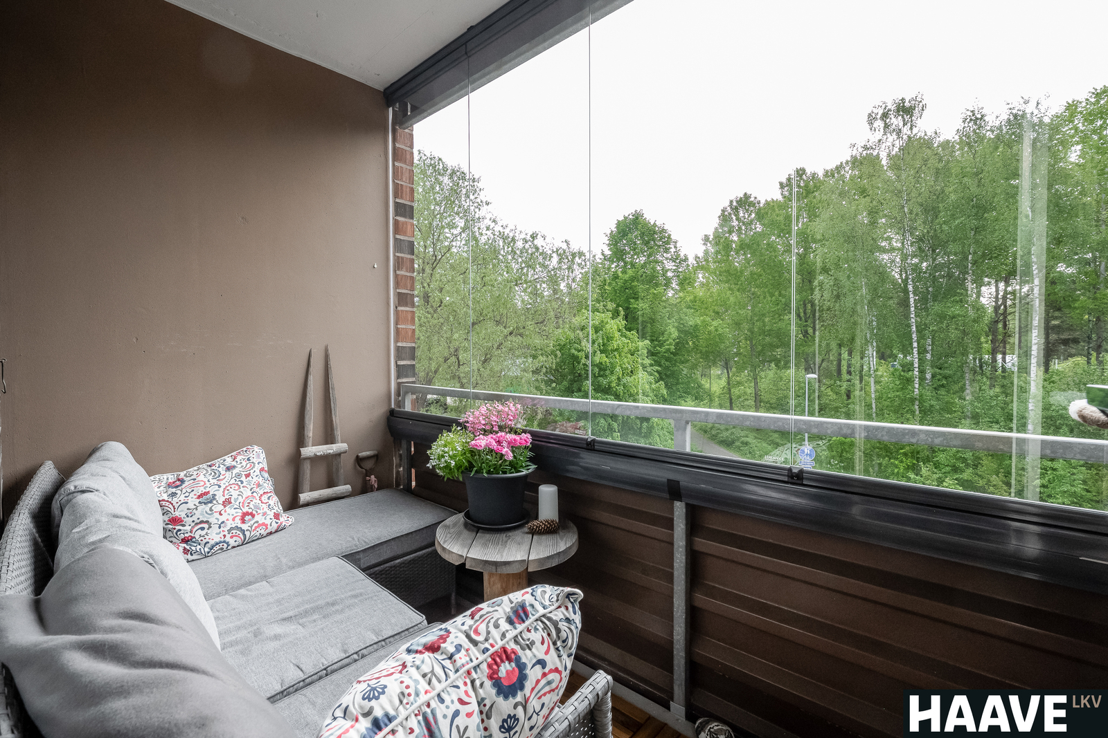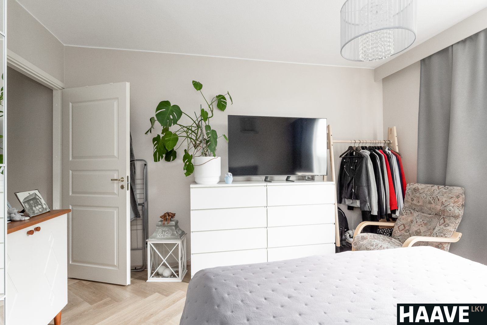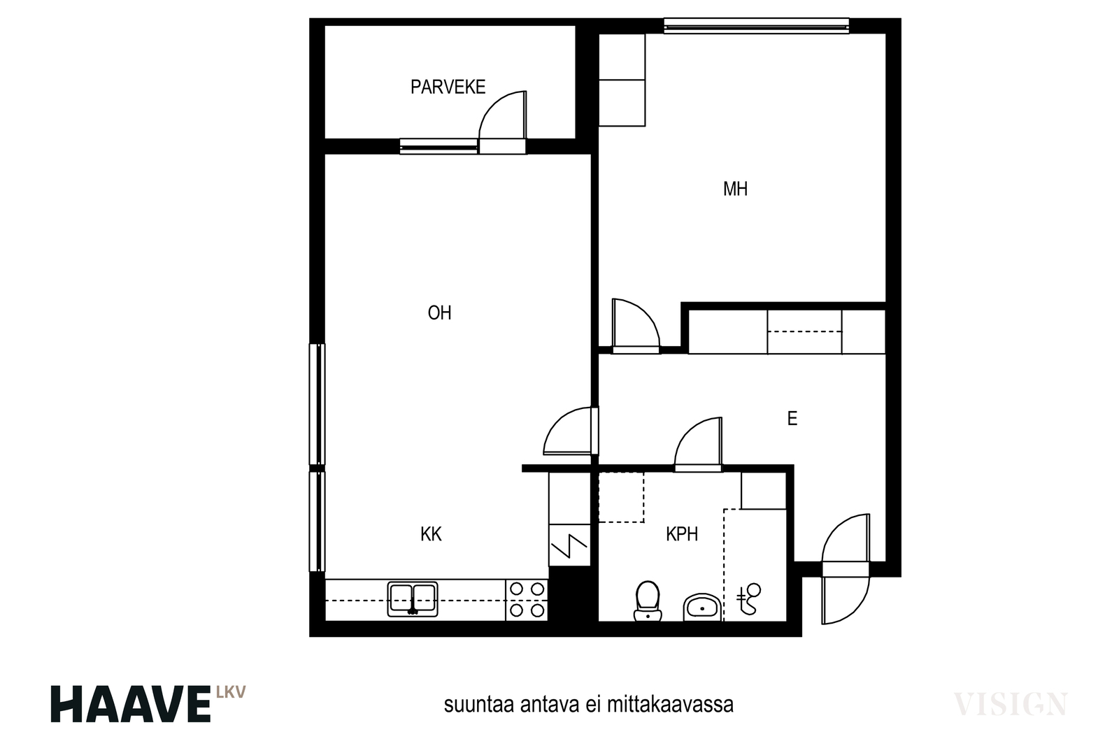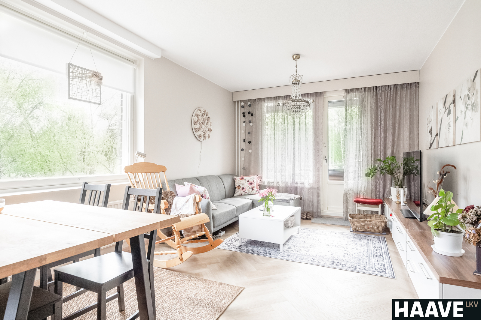 2 krs:n valoisa täysin 2022 remontoitu kulmahuoneisto, jossa avoin keittiö/olohuone, makuuuhuone, kylpyhuone/wc ja lasitettu parveke.