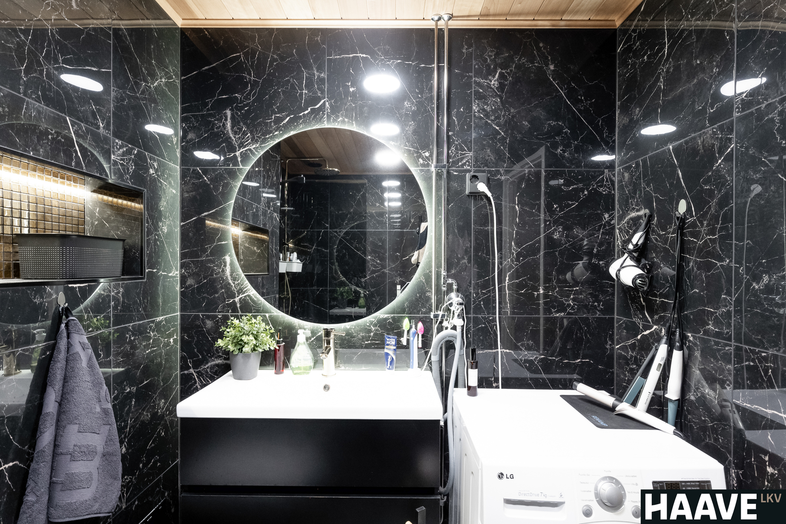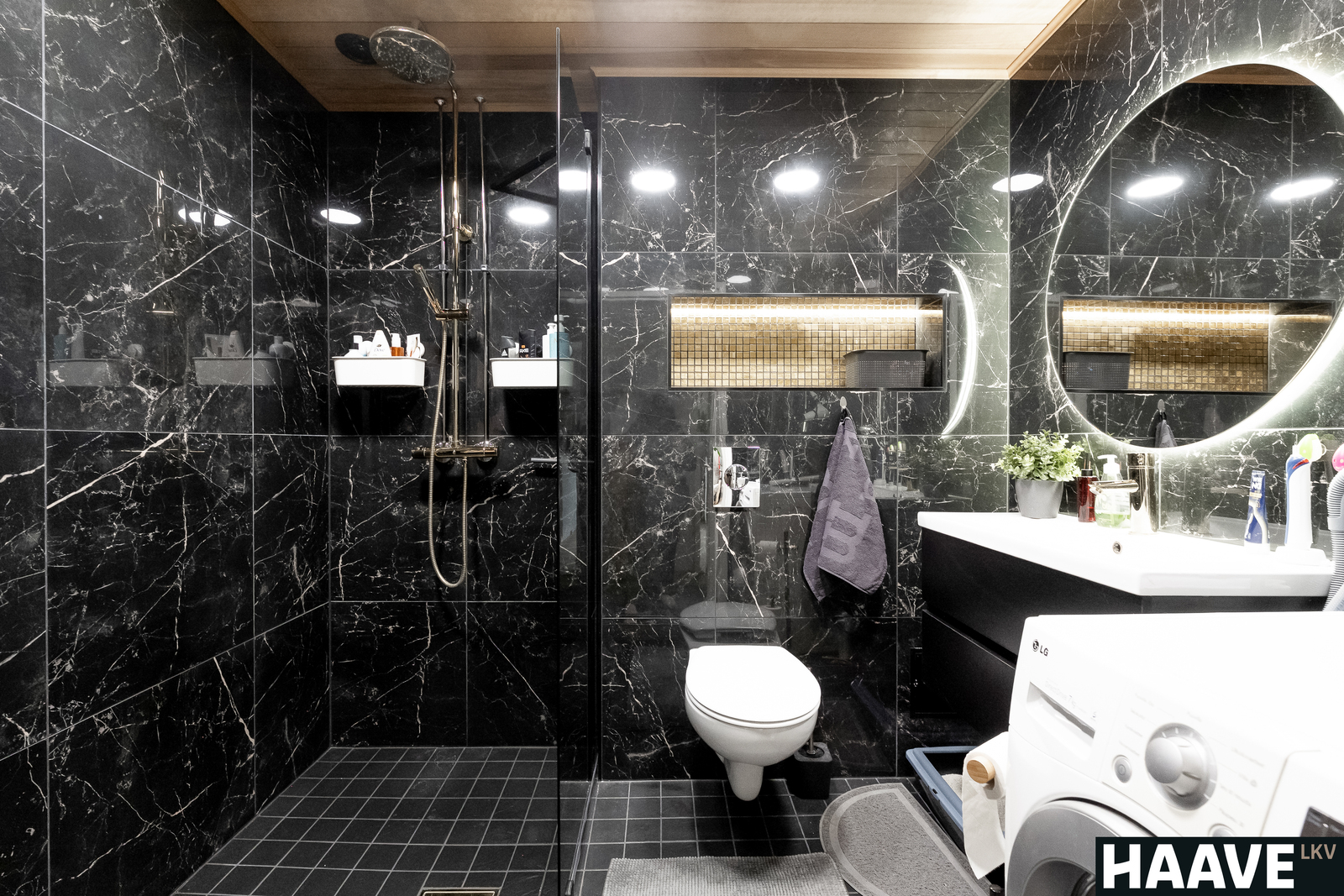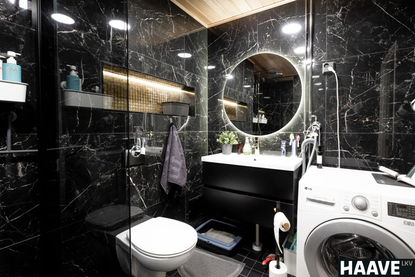 Asunnossa on upea tilava kylpyhuone ja avoin keittiö/olohuone luo lisää tilan tuntua.
