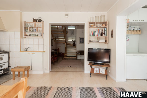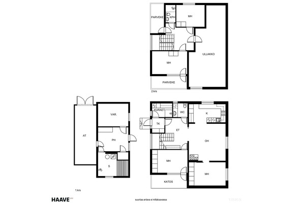 •Alakerrassa: tupakeittiö/oleskelutila, kaksi makuuhuonetta, kuraeteinen ja erillinen wc