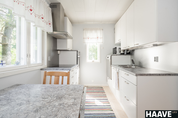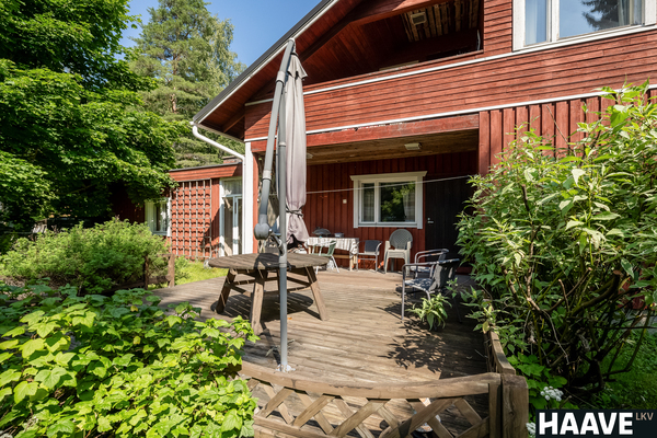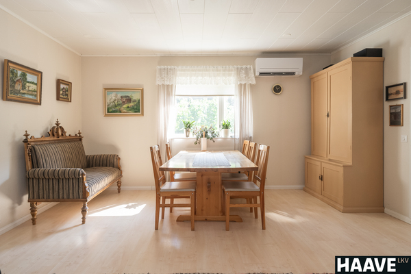 Tervetuloa tutustumaan tähän hurmaavaan kotiin, jossa vanha kohtaa uuden poikkeuksellisen harmonisesti. Alun perin 1920-luvulla rakennettu hirsirunkoinen talo on kokenut perusteellisen uudistuksen vuonna 1984, jolloin se on rakennettu täysin uudelleen nykyiseen muotoonsa vanhaa hirsikehikkoa hyödyntäen. Kokonaisuuteen on lisäksi liitetty kaunis vanha saunarakennus, jonka yhdistää taloon tunnelmallinen, katettu kuisti – täydellinen paikka nauttia kesäilloista tai rauhallisista aamuhetkistä.