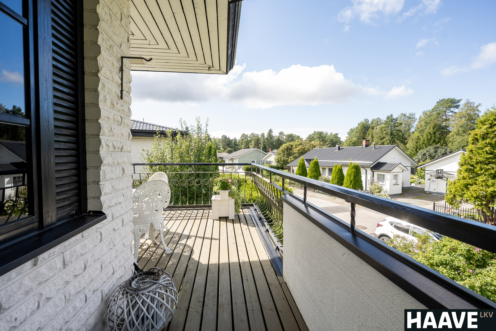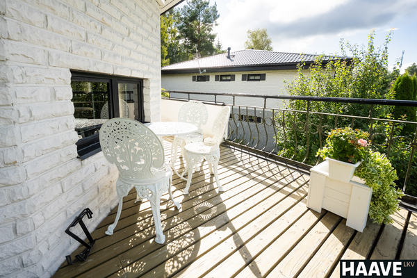 Hyvin rakennettu ja huollettu talo, jossa on mm. uusittu käyttövesiputket 2018. Toimivan ja mukavan arjen takaavat edustavat oleskelutilat, kolme makuuhuonetta, takkahuone, kirjasto (voi muuttaa neljänneksi makuuhuoneeksi), suihkut ja wc:t molemmissa kerroksissa., kaksi parveketta ja useampia terassialueita.