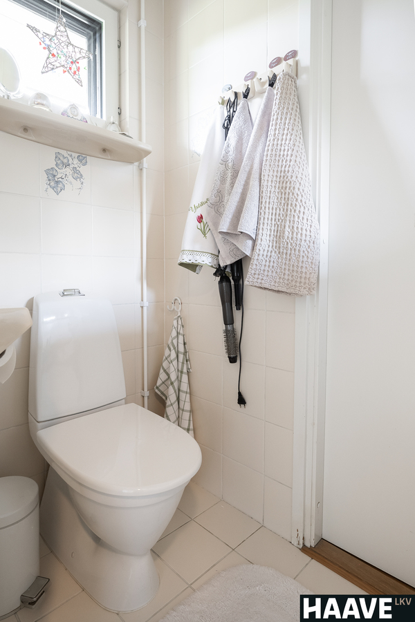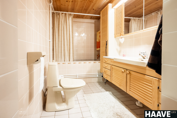 - WC:n kuvaus: Wc molemmissa kerroksissa, alakerran wc:ssä myös suihku ja kylpyamme.
