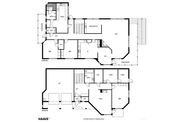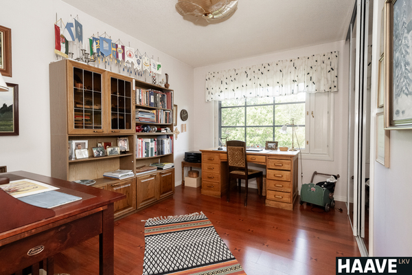 - Muiden tilojen kuvaus: Kirjastohuoneen voi tarvittaessa muuttaa makuuhuoneeksi.