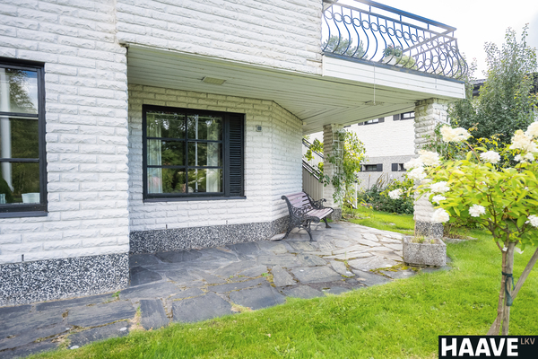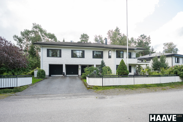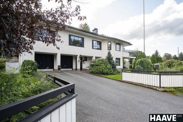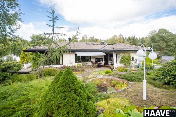 Sähkölämmitystä tukevat kolme tulisijaa ja kaksi ilmalämpöpumppua. Säilytystiloja löytyy runsaasti, mm. lämmin kahden auton talli, alakerran varastot ja kaksi vaatehuonetta. Näyttävä rinnetontti istutuksineen, kallioineen ja nurmialueineen.