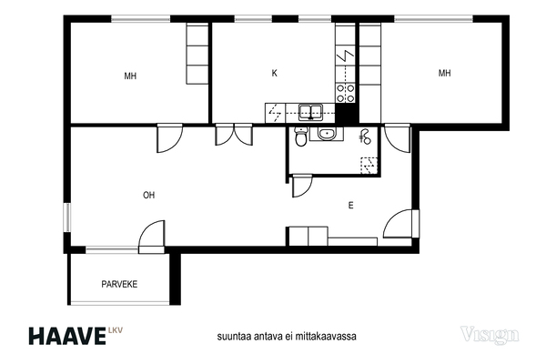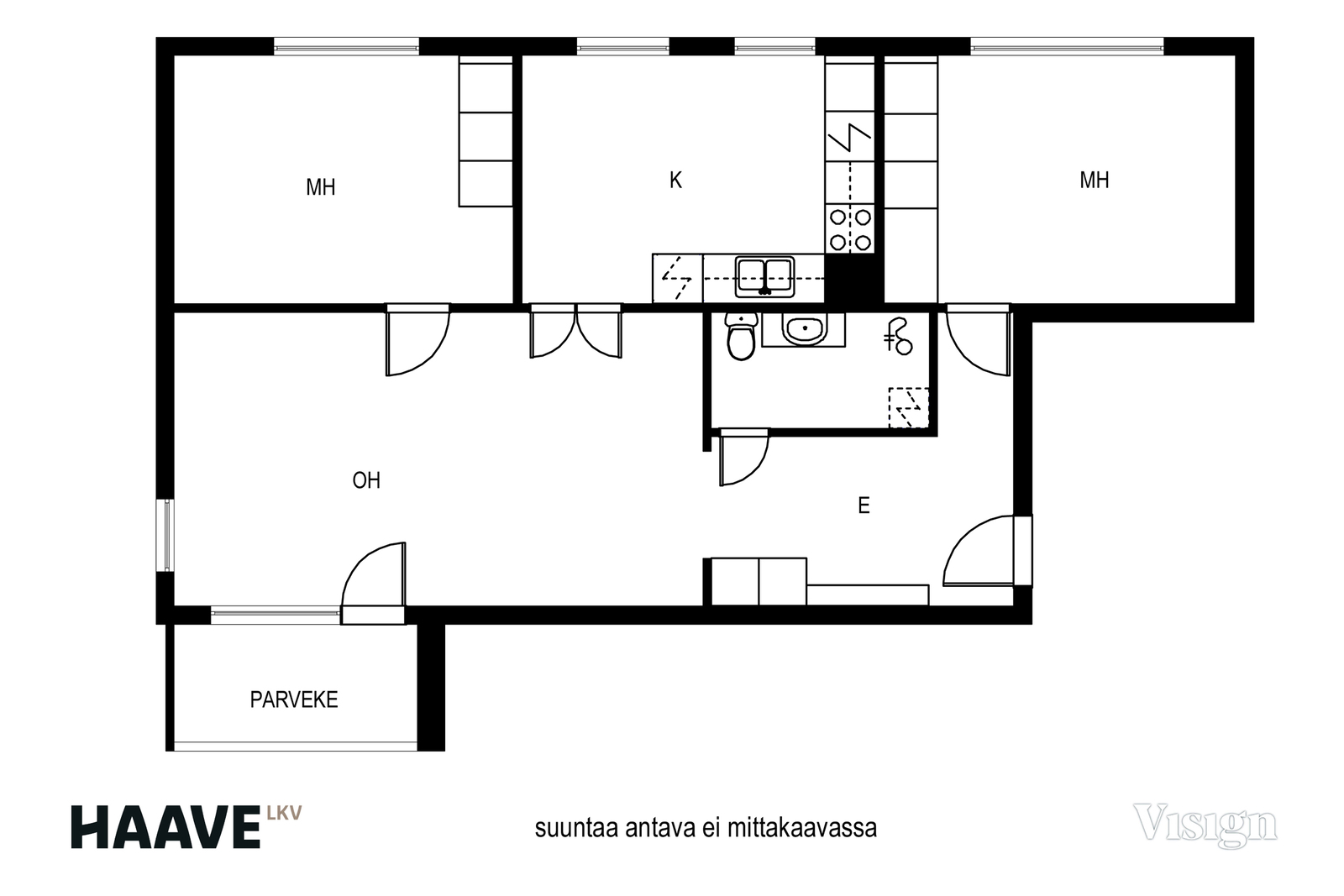 - Olohuoneen kuvaus: Ikkunat kahteen suuntaan, käynti parvekkeelle.