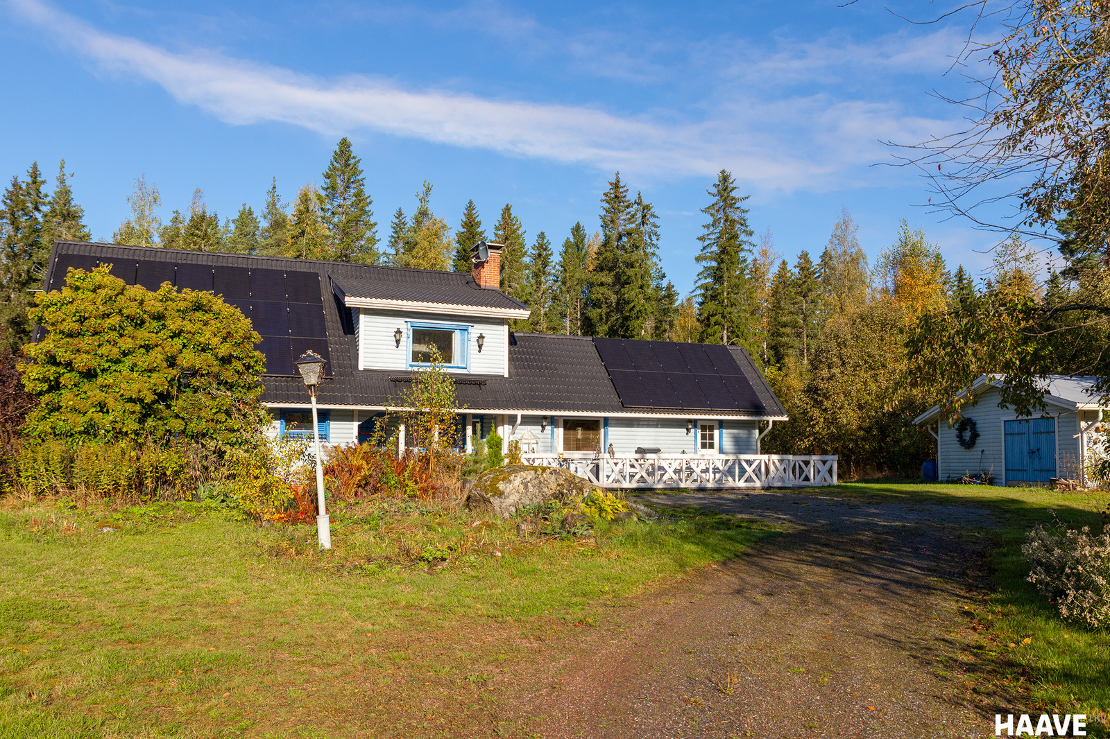Piha-alue on 11 650 m²:n rinnetontti, jossa on sekä puustoa että avaruutta – täydellinen ympäristö lapsille, lemmikeille ja harrastuksille. Kiinteistöön kuuluu lisäksi 108 m²:n erillinen autotallirakennus, joka tarjoaa tilaa autoille, harrasteille ja varastoinnille.