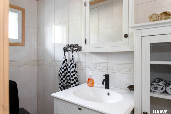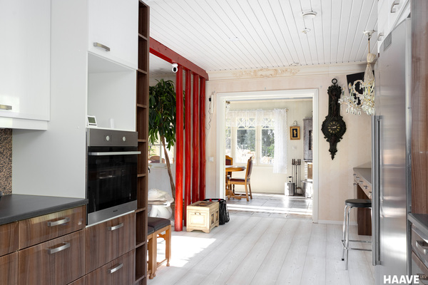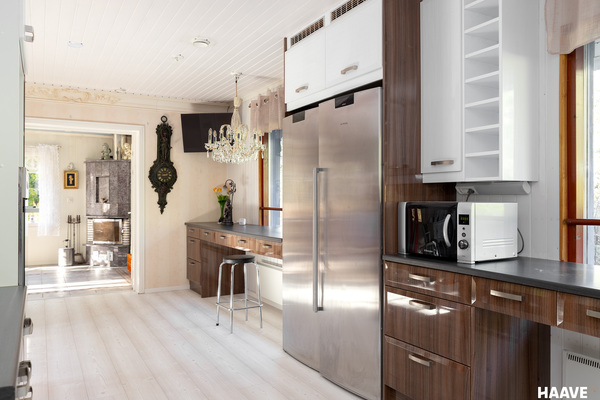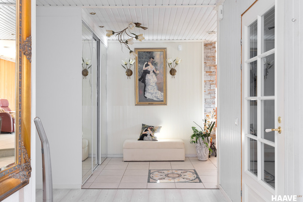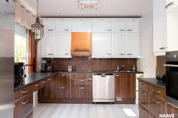 Jo sisään astuessa vastassa on lämmin tunnelma ja kauniit yksityiskohdat. Kodin sydämenä toimii upea ja tilava keittiö, jonka graniittiset taustalevyt ja käytännölliset ratkaisut tekevät ruoanlaitosta nautinnon. Vieressä sijaitseva ruokailutila sekä valoisa olohuone tarjoavat tilaa yhdessäololle.