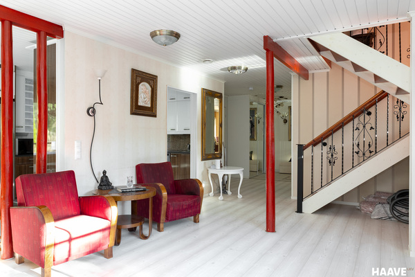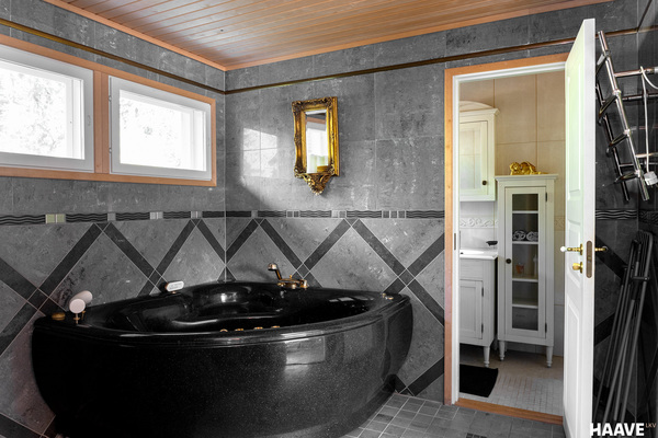 Rentoutumista varten kodissa on ylelliset kylpy- ja saunatilat poreammeineen sekä takkahuone, joka luo tunnelmaa kylmiin iltoihin. Ihana lasiveranta jatkaa oleskelutiloja ja kutsuu nauttimaan maisemista keväästä syksyyn.