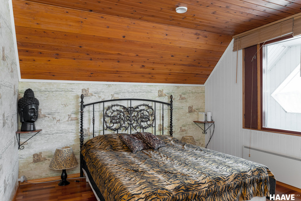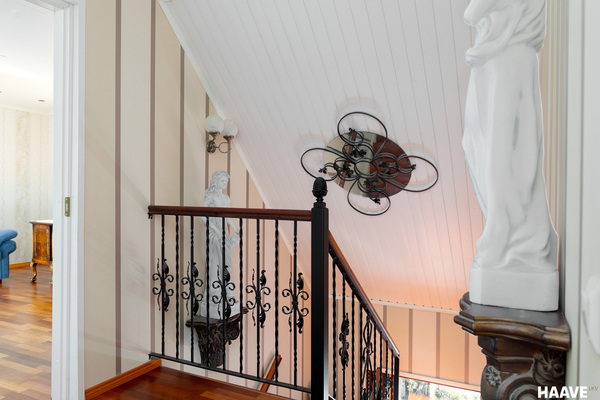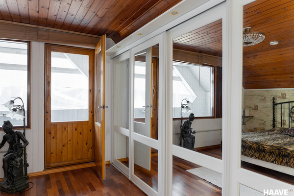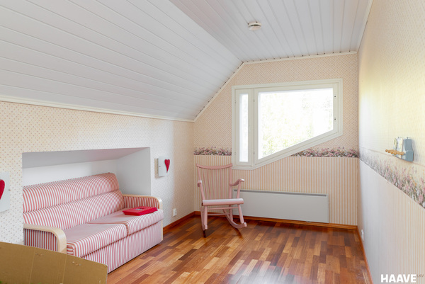 Yläkerrassa sijaitsevat kolme makuuhuonetta sekä vaatehuone. Arkea helpottaa erillinen kodinhoitohuone, kaksi wc:tä sekä runsaasti säilytystilaa.