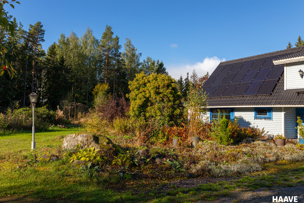 - Lämmitysjärjestelmä: aurinkolämpö, puu, sähkö